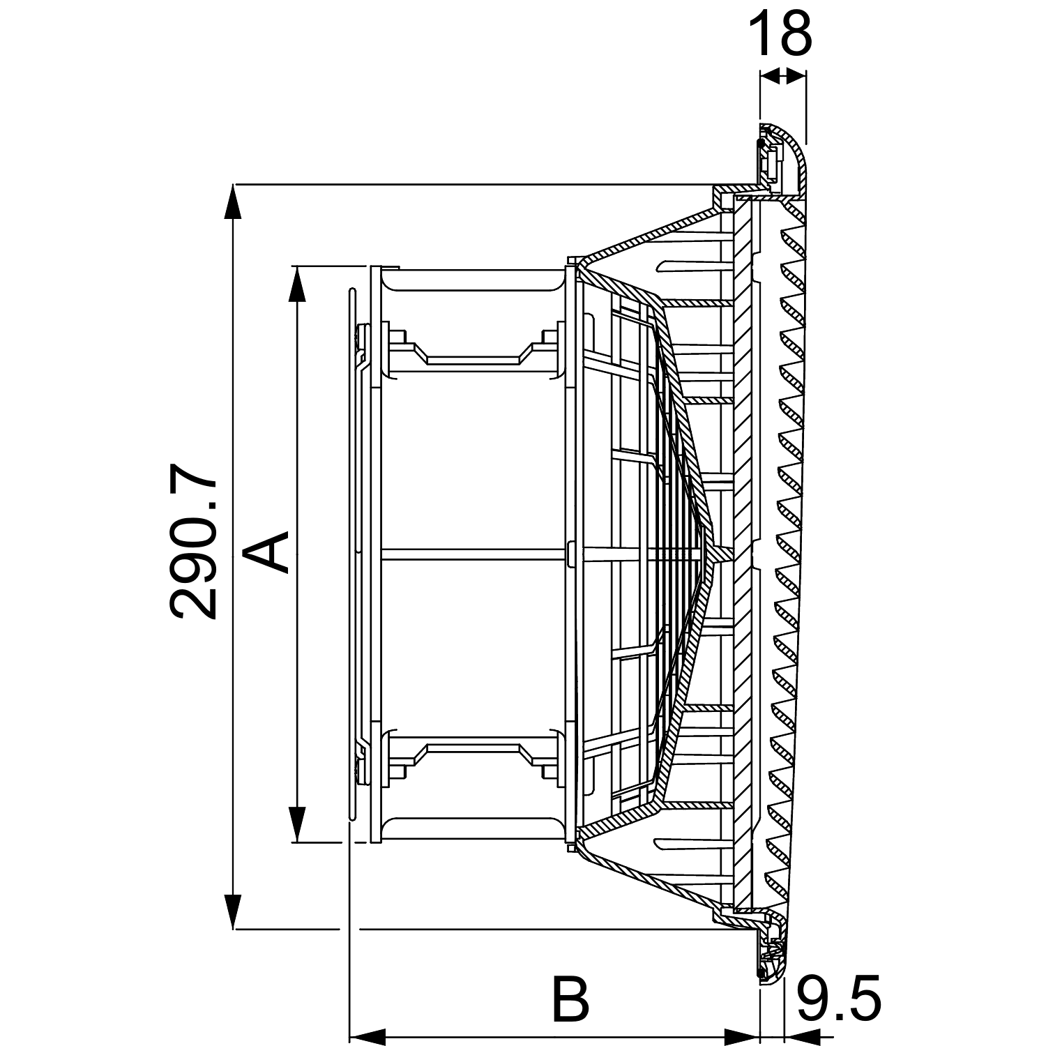flux volumique, à soufflage libre: