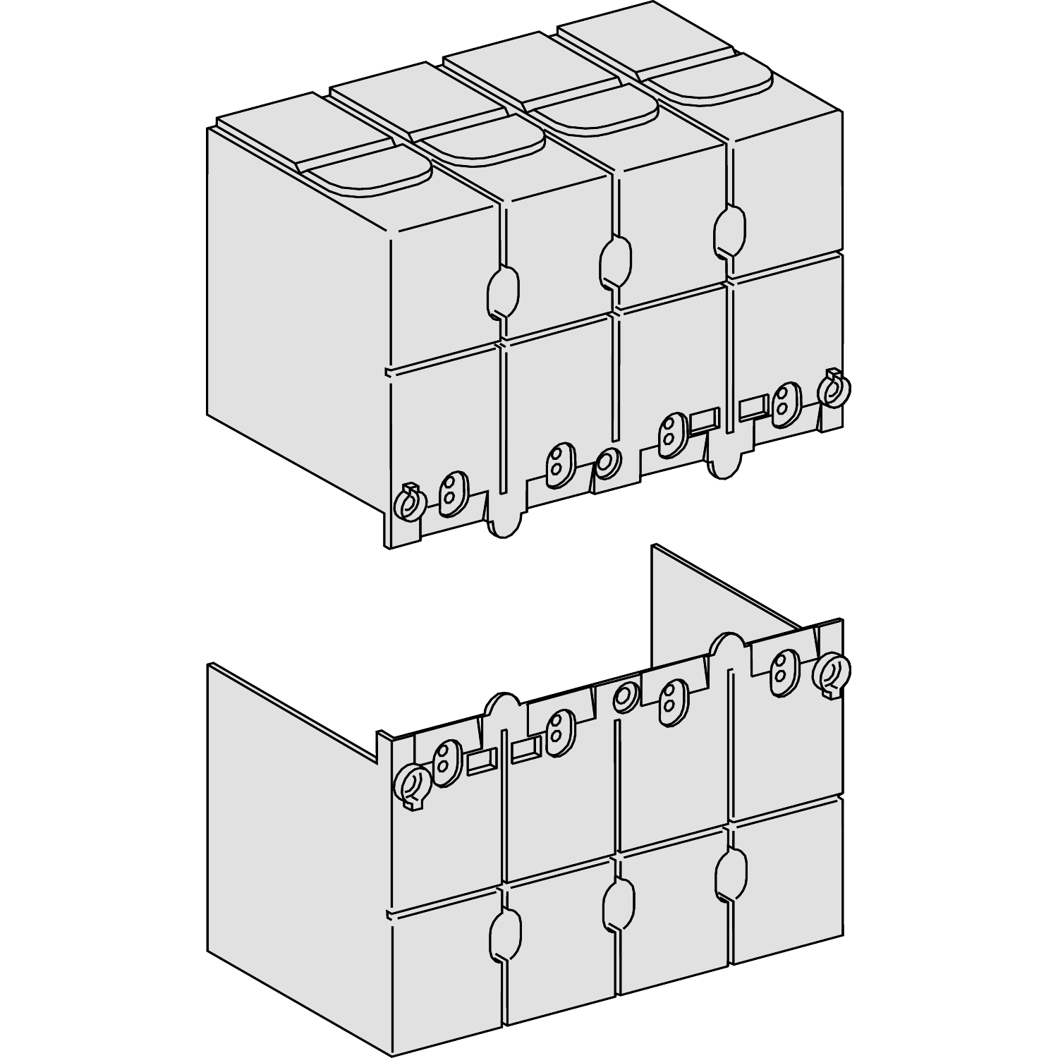 Il est utilisé avec les interrupteurs-sectionneurs 3 pôles Compact INS/INV 800 à 1600. Il permet d'atteindre la distance de dégagement demandée par la norme CEI 60947-2. Il est fourni avec des accessoires de plombage.