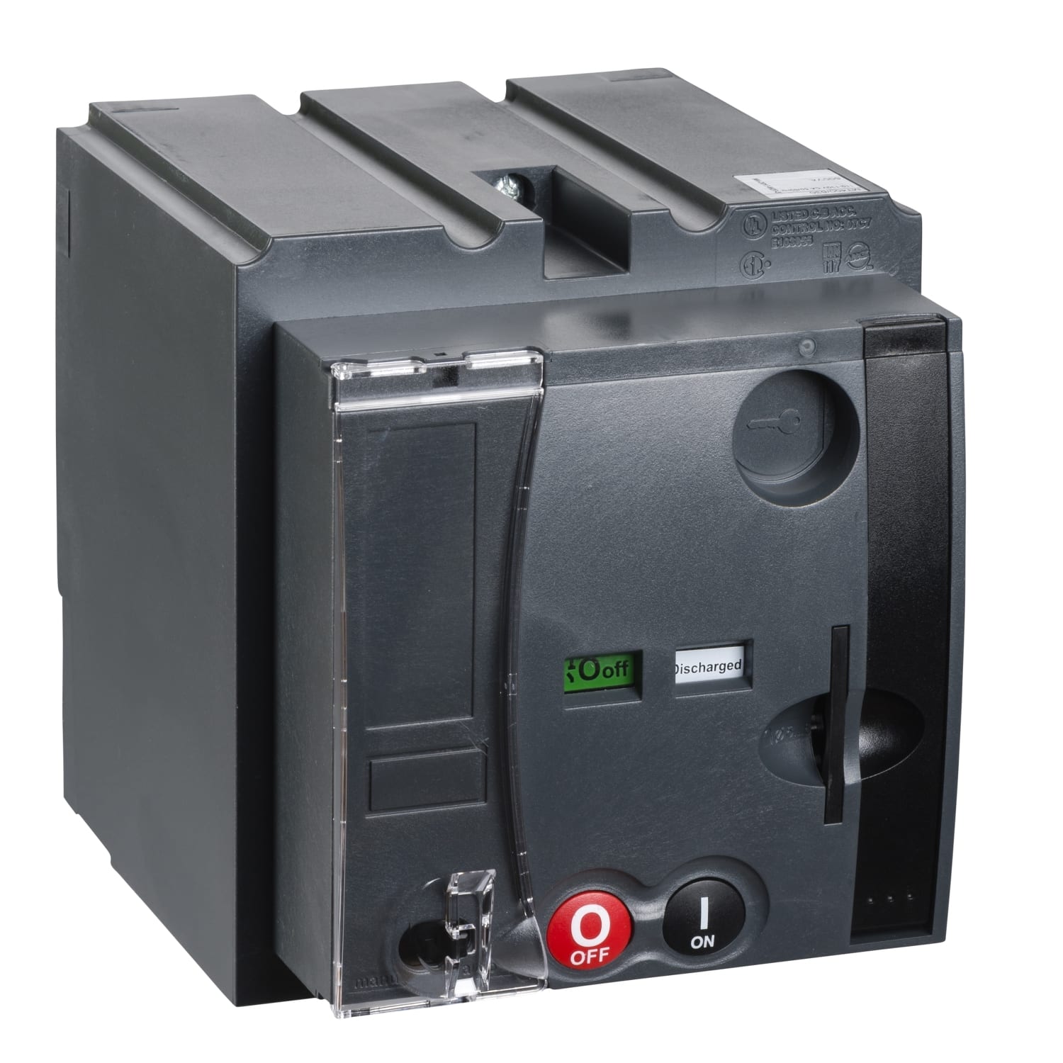 Elle aide le disjoncteur à présenter une endurance mécanique élevée ainsi que des opérations d'ouverture ou de fermeture faciles et sûres. Elle fournit une double isolation de la face avant et toutes les indications restent visibles et accessibles. Le cadenassage de l'appareil reste possible. La tension de commande de ce module de commande électrique est comprise entre 110 et 130 V CA 50/60 Hz. La consommation est inférieure à 500 VA.
