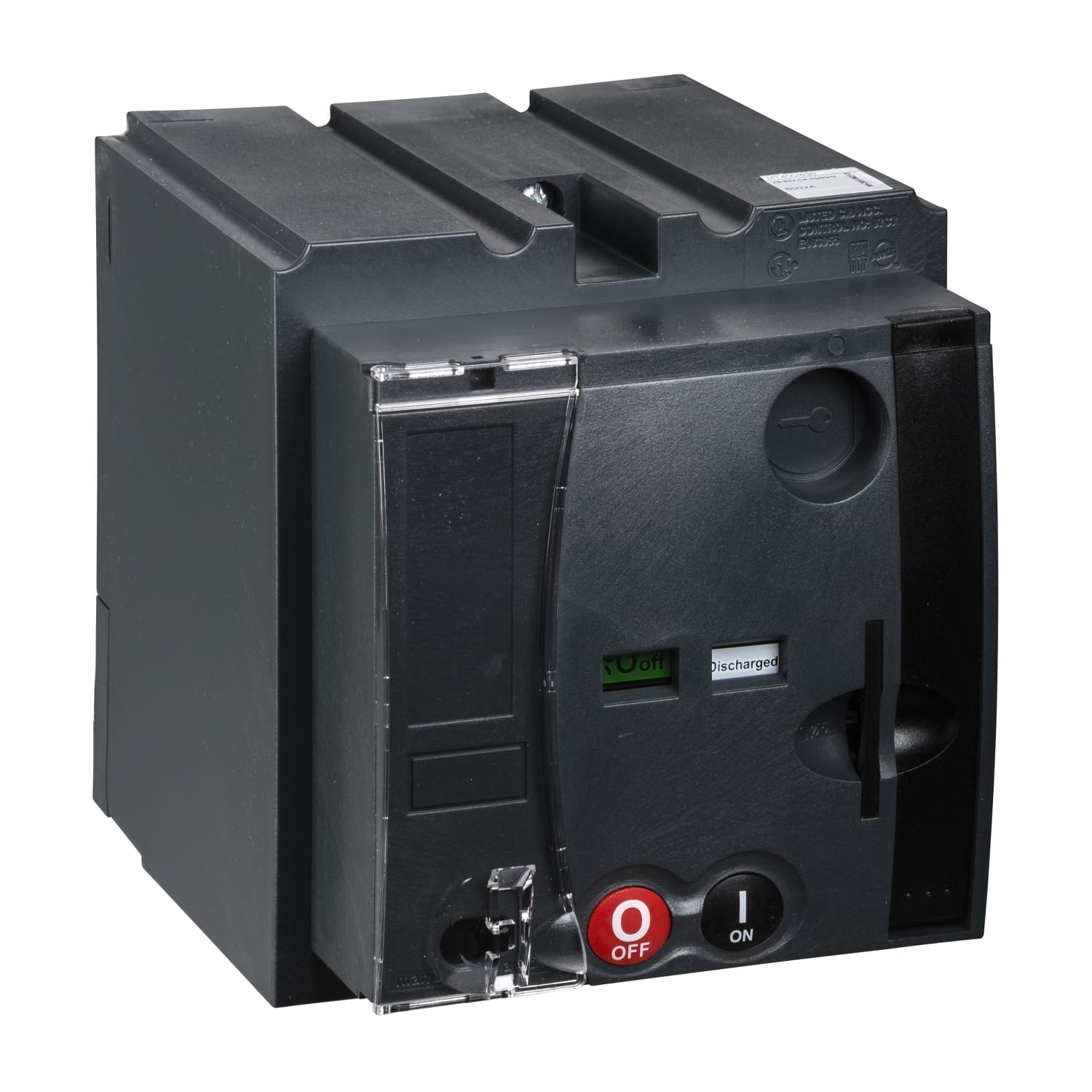 Elle aide le disjoncteur à présenter une endurance mécanique élevée ainsi que des opérations d'ouverture ou de fermeture faciles et sûres. Elle fournit une double isolation de la face avant et toutes les indications restent visibles et accessibles. Le cadenassage de l'appareil reste possible. La tension de commande de ce module de commande électrique est comprise entre 380 et 415 V CA 50/60 Hz. La consommation est inférieure à 500 VA.