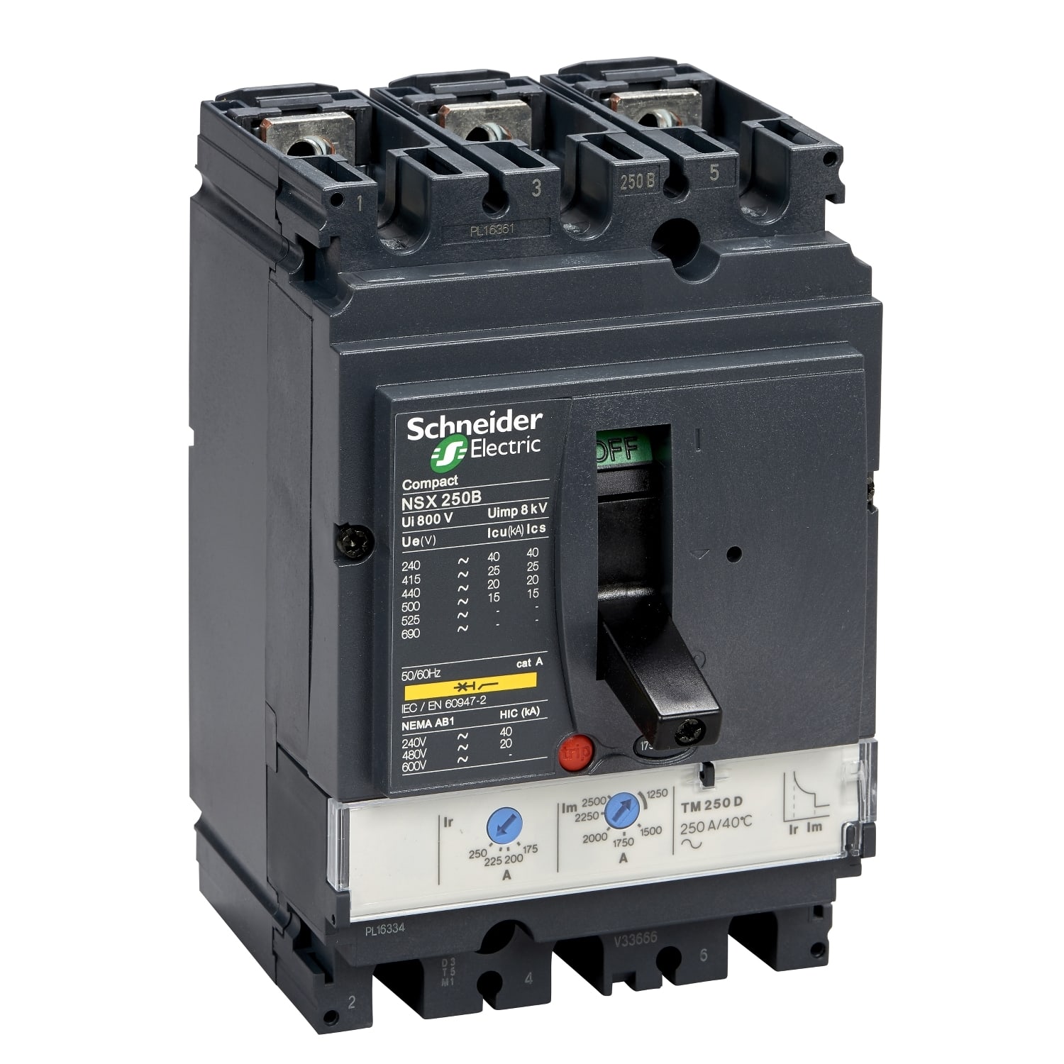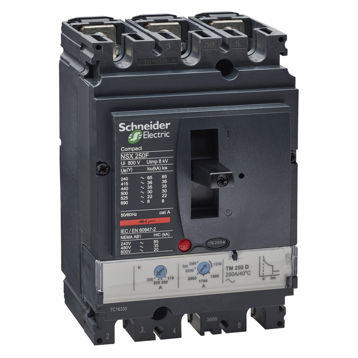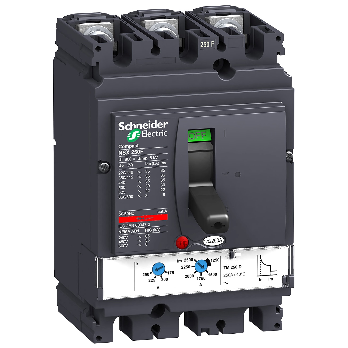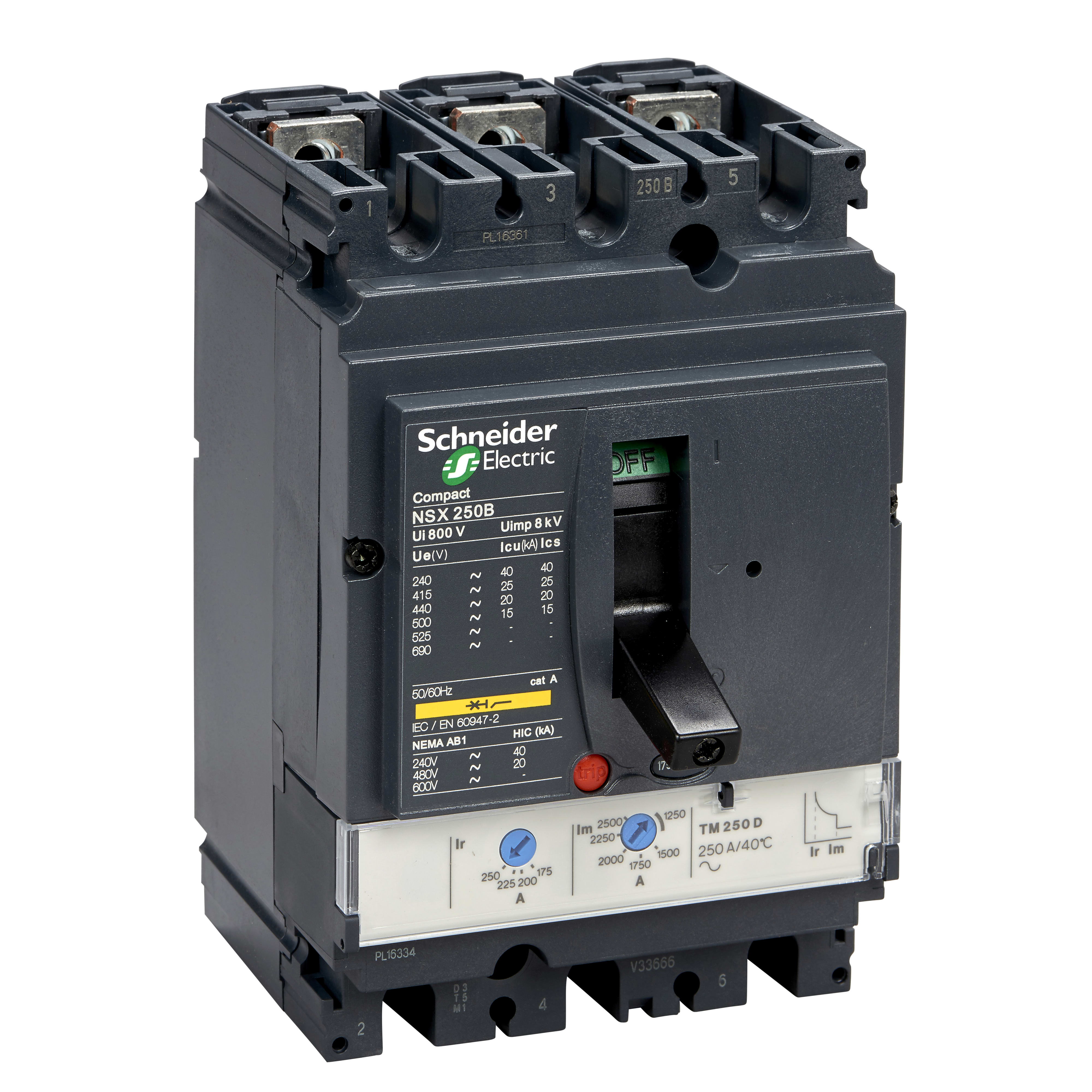 Compact - disjoncteur NSX250F - déclencheur TM-D magnéto-thermique - 3P - 3t - calibre 250A - 690VCA 50/60 Hz - montage fixe - raccordement avant - Pdc F - 36kA 380/415VCA 8kA 660/690VCA
