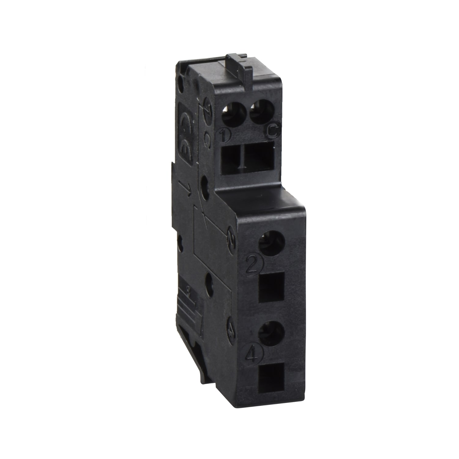 Il s'agit d'un contact auxiliaire standard unique qui fournit deux informations à distance sur l'état du disjoncteur Il est utilisé sur les appareils Compact NSXm et PowerPact B Le contact OF (ouvert/fermé) indique la position des contacts principaux du disjoncteur Le contact SD (indication de déclenchement) indique si le disjoncteur s'est déclenché Il existe un modèle de contact auxiliaire pour les informations OF et SD, selon l'endroit où il est installé dans l'appareil Cet auxiliaire est un contact de type inverseur à point commun avec 1 contact normalement ouvert et 1 contact normalement fermé Le courant nominal est de 5A et la charge minimale est de 2mA à 17 VCC Les catégories d'utilisation sont AC12 / AC13 / DC12 / DC13 / DC14 Compact NSXm embarque 2 contacts auxiliaires et leur présence est visible en face avant grâce à des drapeaux verts Il est conforme à la norme CEI 60947-5-1