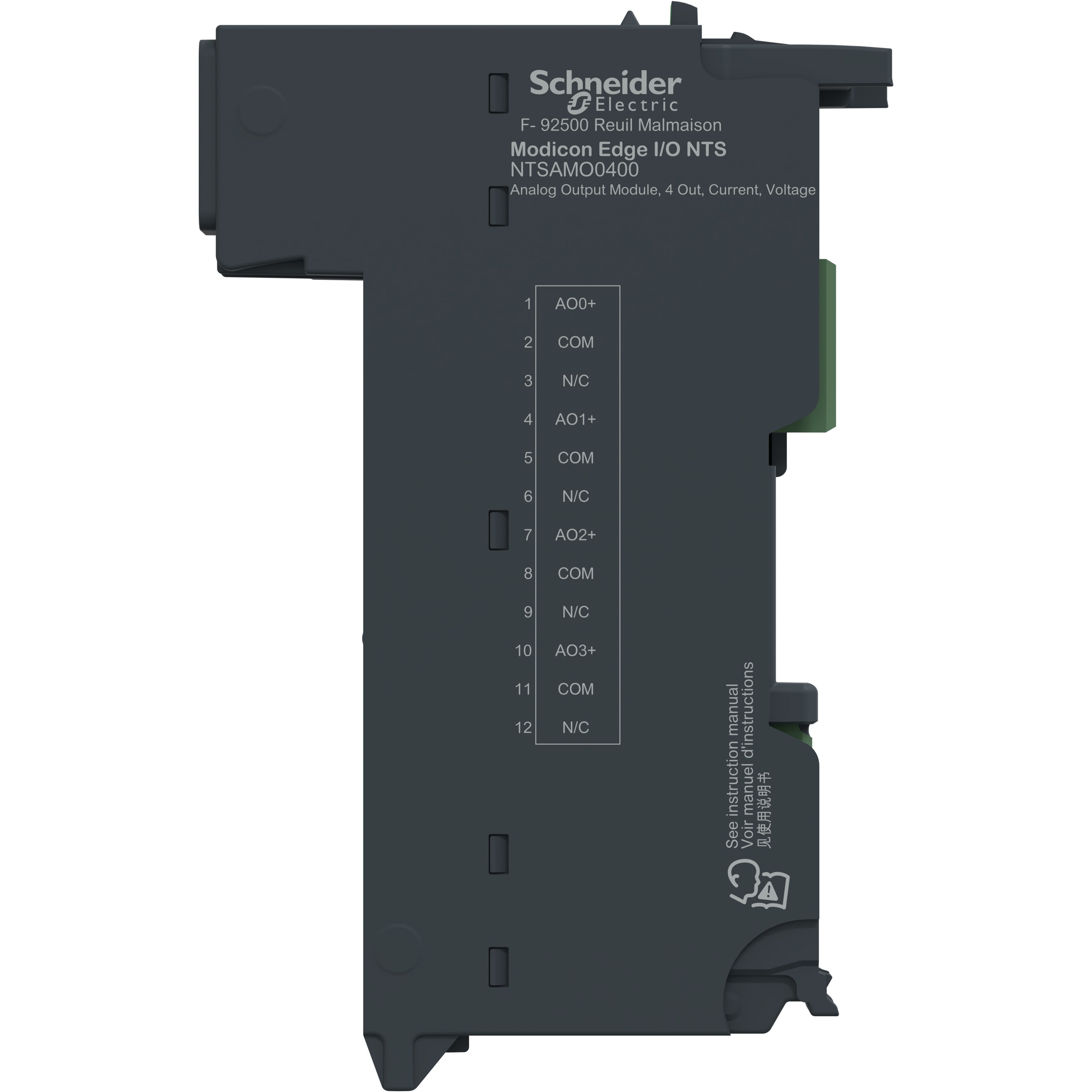 Schneider Electric - Edge I/O NTS Module seul Sortie Ana 4 voies, Courant/Tension, 2Fils - NTSAMO0400