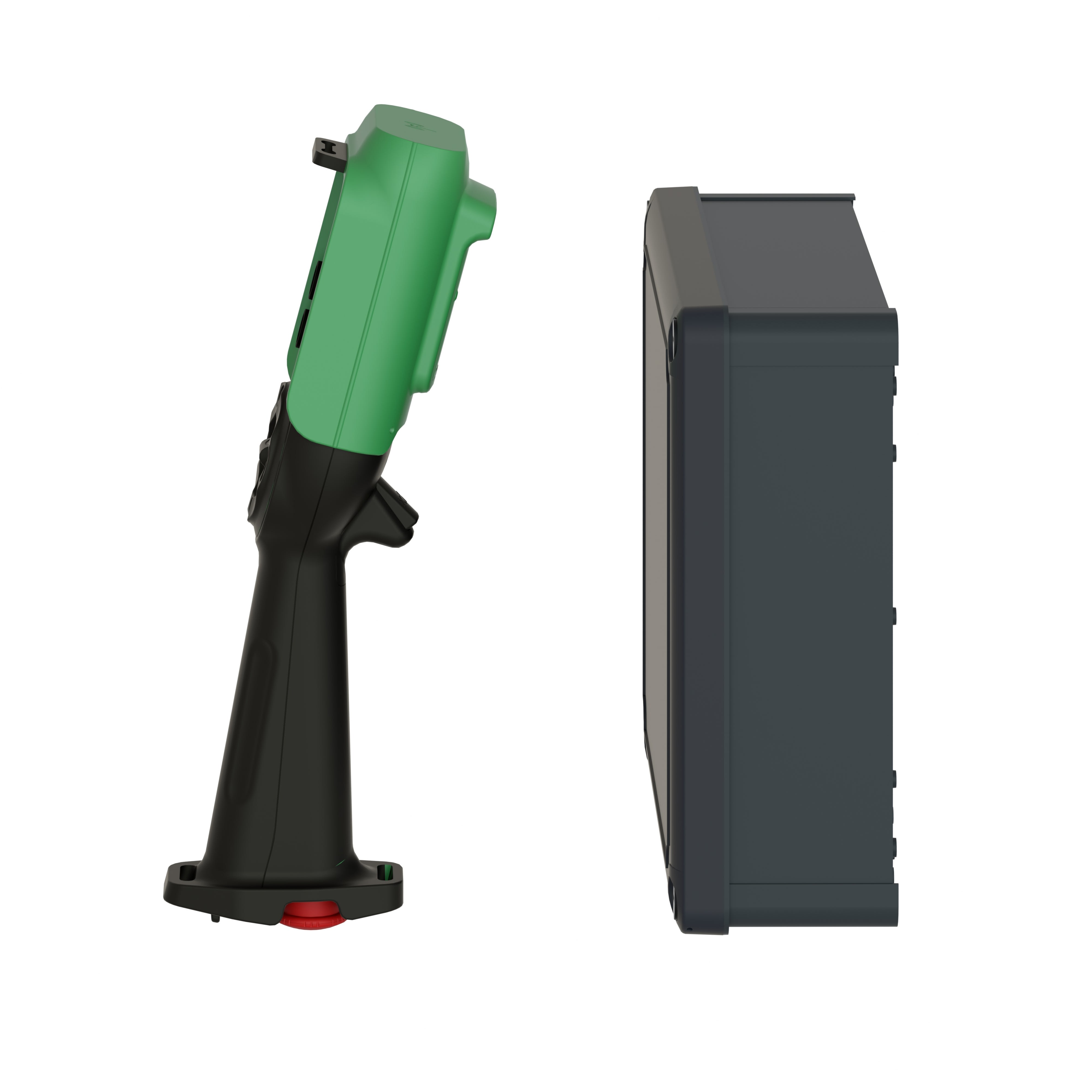 Cette solution se décompose en trois éléments : la télécommande sans fil pour améliorer la mobilité des opérateurs, la station de contrôle directement reliée à la machine, le chargeur. Les télécommandes peuvent disposer de 12 boutons au maximum, afin de contrôler plusieurs vitesses et sens de déplacement. A cela s'ajoute un écran LCD et une protection opérateur : si l'opérateur tombe la sécurité s'enclenche.
