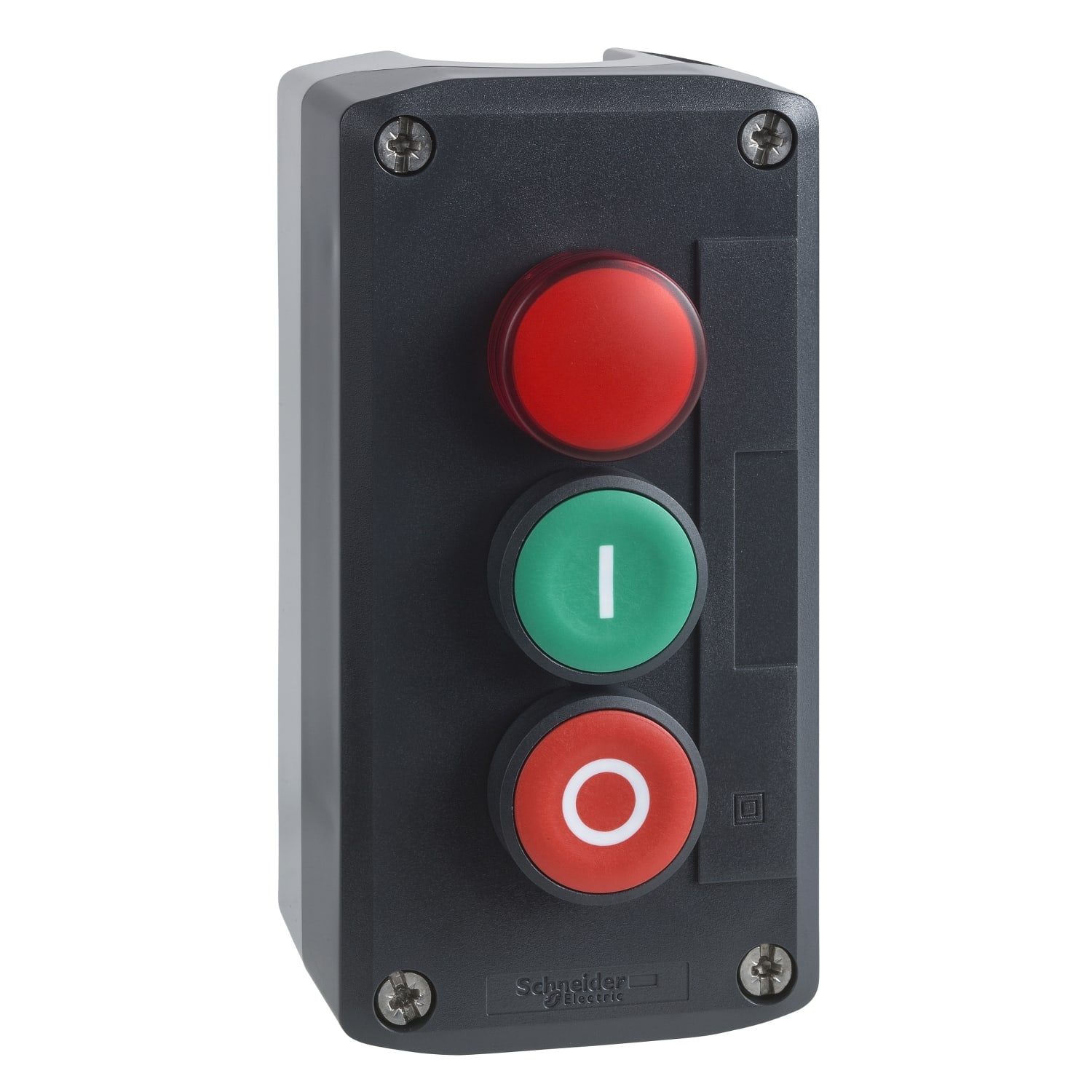 Schneider Electric - Harmony boite - 3 boutons poussoirs Ø22 - vert /rouge/voyant rouge - XALD363G