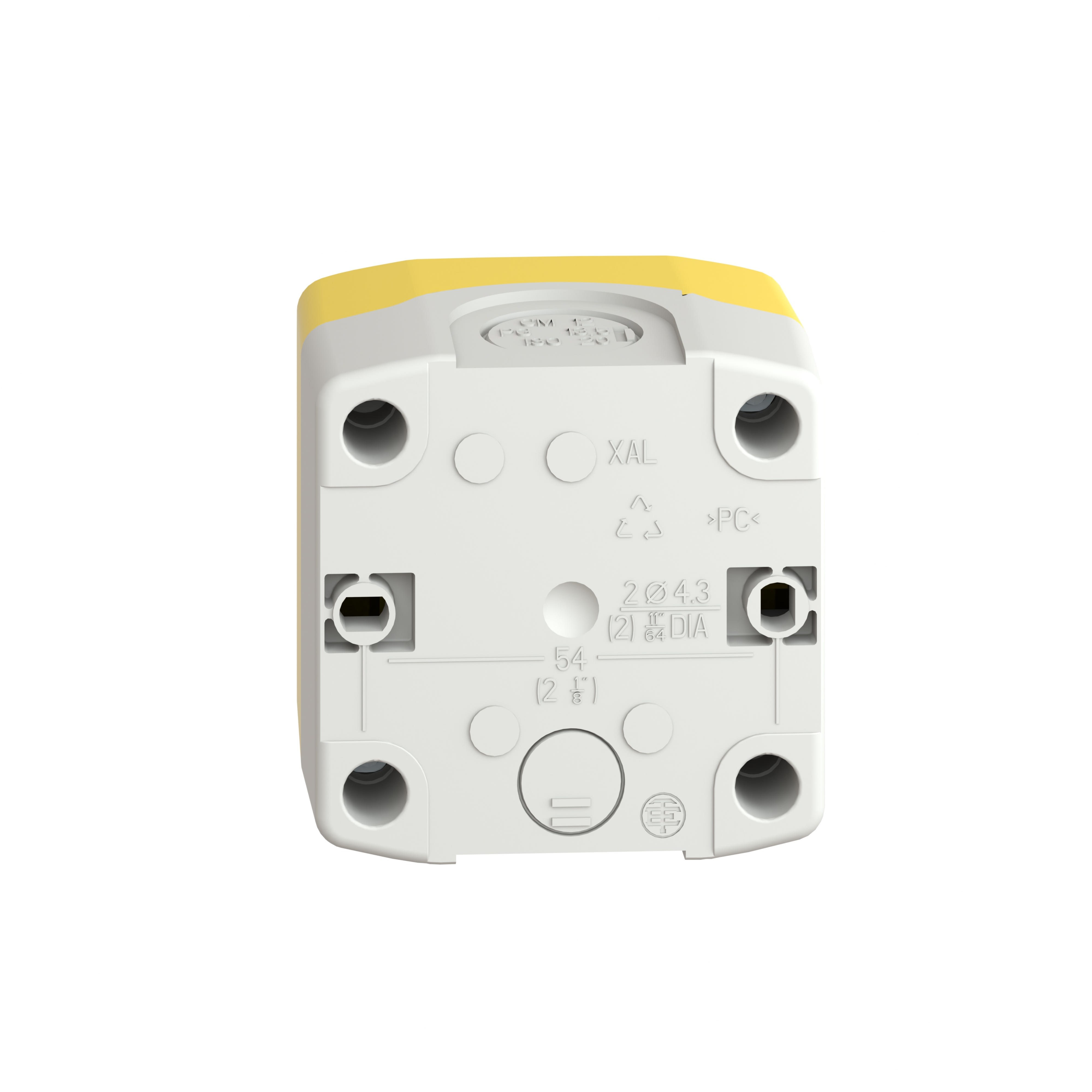 Harmony - boîte équipée XALK jaune - plastique - 1 bouton-poussoir Ø40mm coup de poing rouge - 1O sans marquage - pousser-tirer - 1 entrée de câble <= 14mm | 2 préperçages Pg 13 et ISO M20 <= 12mm - IP66