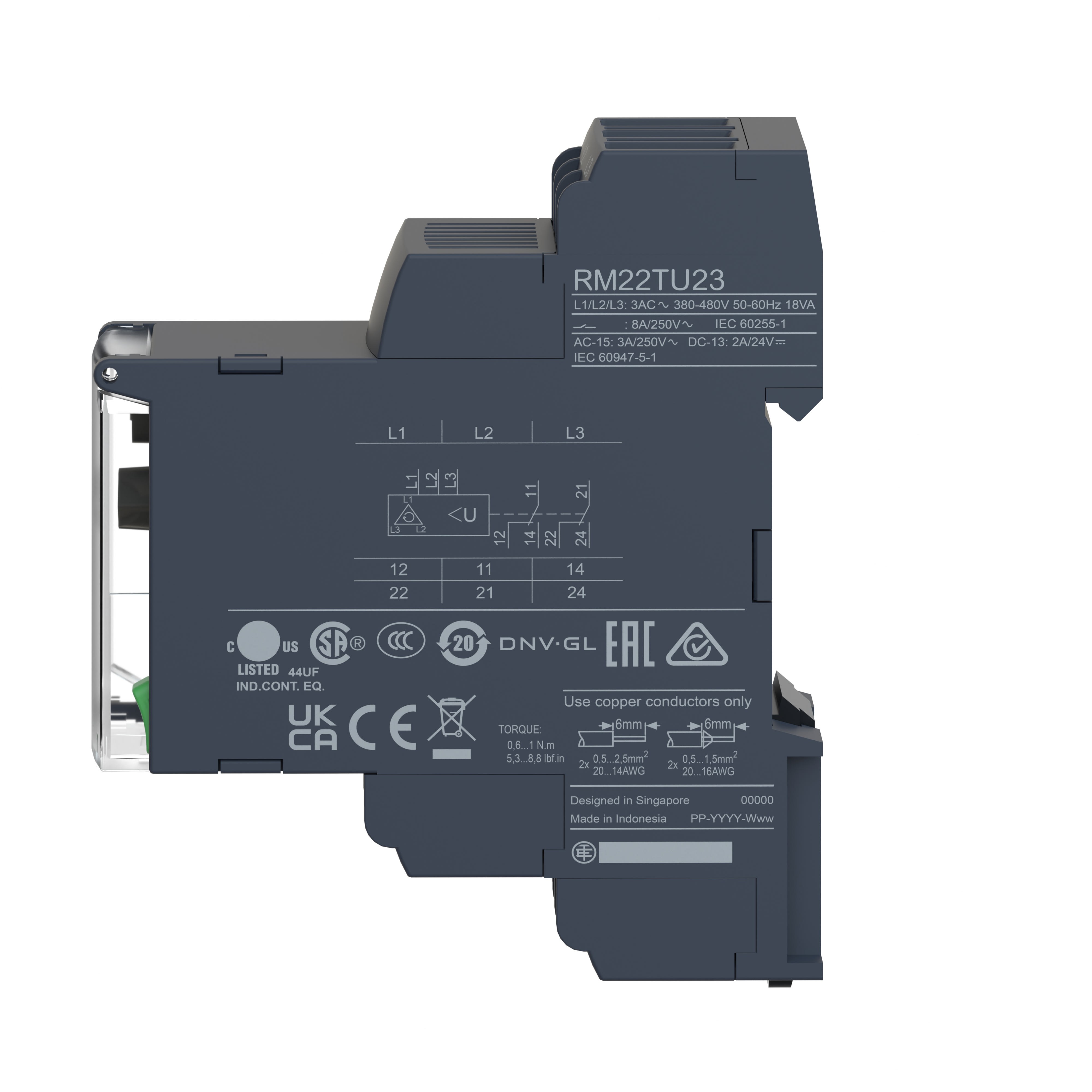 Schneider Electric - Harmony Control RM22 - relais contrôle de phases - 2OF - 380 à 480Vca - RM22TU23
