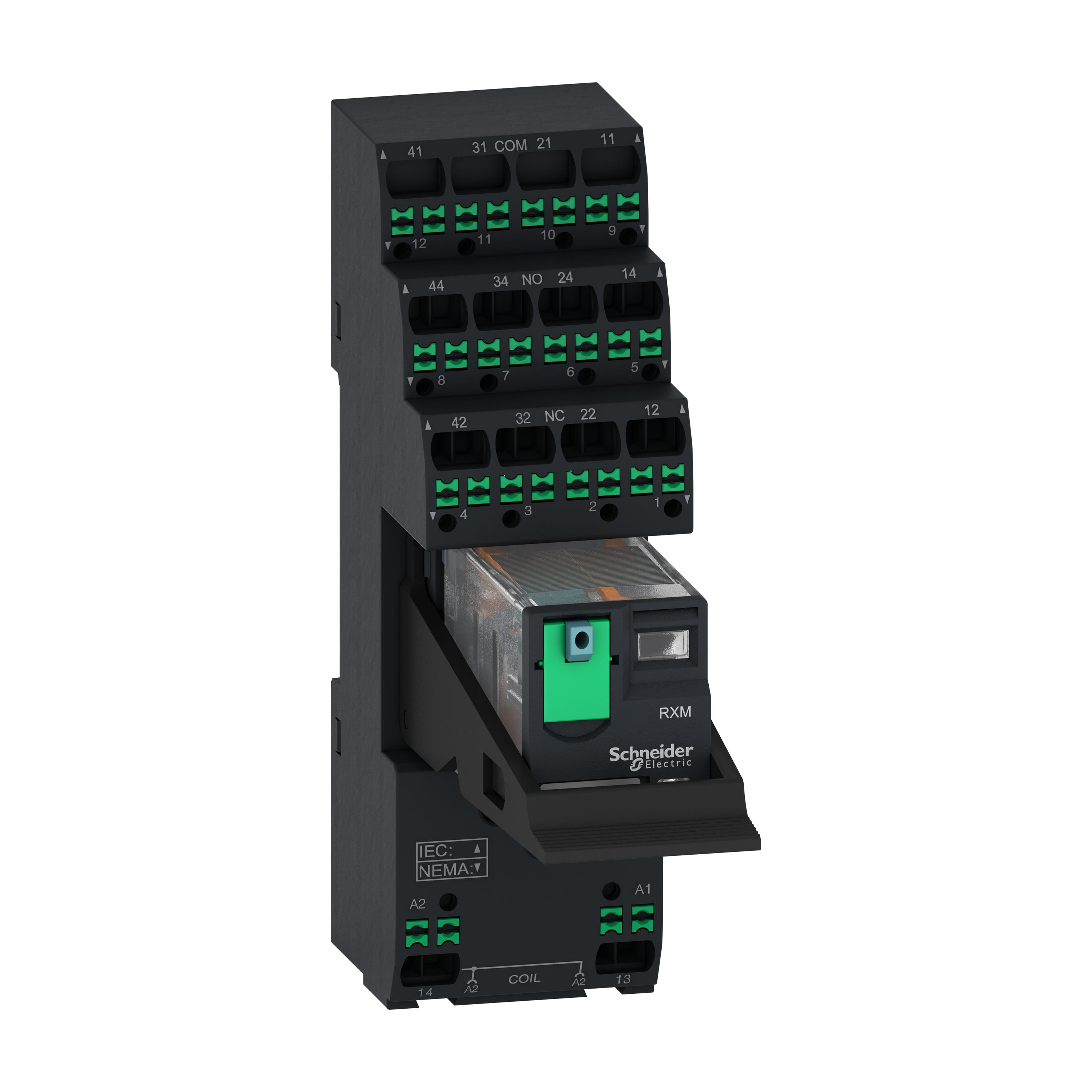 Schneider Electric - Harmony Easy relais + Emb PushIn cont séparés - 4OF - 6A - test+LED - 24Vdc - RXM4AB2BDPVP