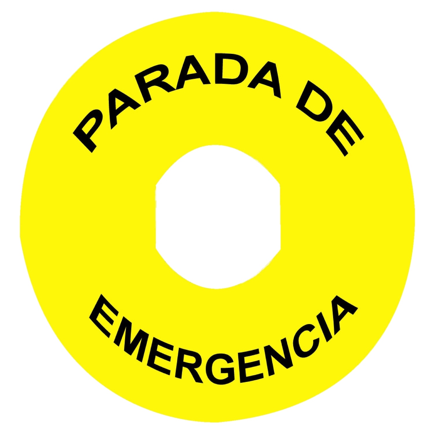 Schneider Electric - Harmony étiquette circulaire Ø90mm jaune - logo EN13850 - PARADA DE EMERGENCIA - ZBY8430