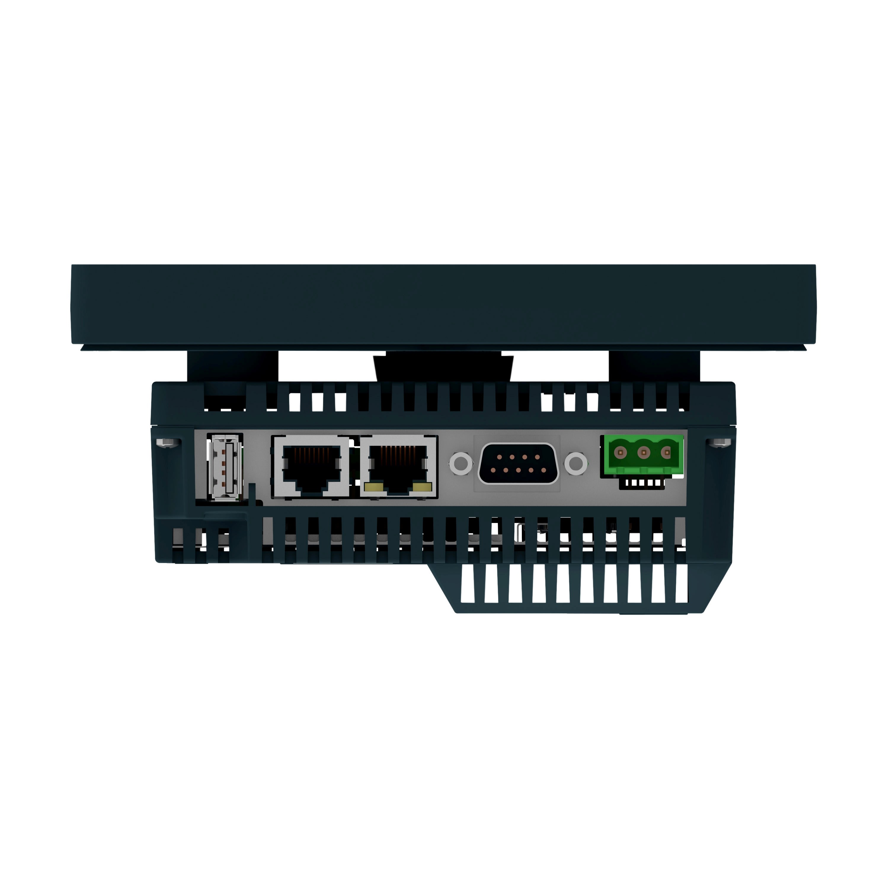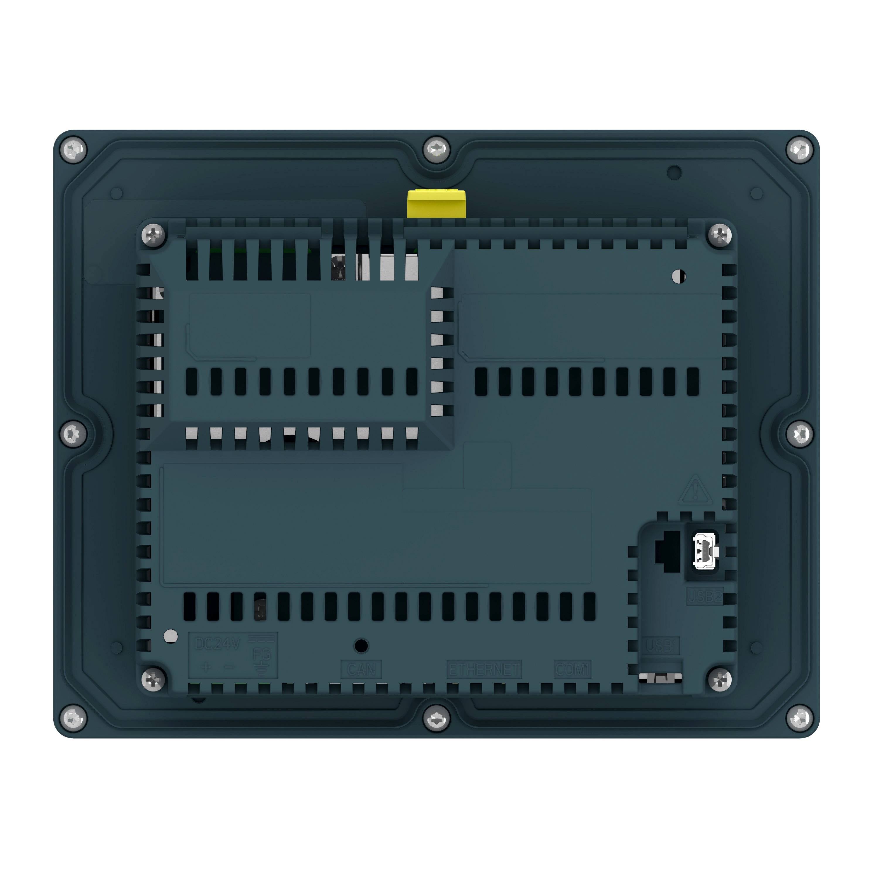 Ce module contrôleur fait partie de la gamme Harmony SCU, une offre de contrôleurs IHM avec écrans couleur de 3,5 à 5,7 pouces. Ce panneau arrière de contrôleur de module fournit 8/8 E/S numériques et 4/2 E/S analogiques. Il prend en charge les protocoles téléchargeables Modbus, CANopen et Modbus TCP/IP. Il est conçu avec un stockage de données interne de 128 Ko de mémoire FRAM, un NAND flash de 128 Mo et une mémoire DRAM d'exécution d'application de 128 Mo. Il s'agit d'un panneau de contrôleur avec une tension d'alimentation nominale de 24 V CC, alimenté par une source externe avec les plages limites de 20,4 V à 28,8 V CC. Il s’agit d’un produit classé IP20 (face arrière) / IP65 (face avant) et NEMA 4X. Le boîtier est constitué de PC/PBT. Ses dimensions sont de 128 x 102 x 50,65 mm (largeur x profondeur x hauteur) et pèse 0,398 kg. Il est certifié par CULus, CUL, GOST, C-Tick, CSA, KCC. Il est conforme aux normes UL 508, FCC Classe A, EN 61131-2, directive DEEE 2002/96/CE, CSA C22.2 No 213 Classe I Division 2, ANSI/ISA 12-12-01, RoHS, RoHS China SJ/T 11363-2006, IEC 61000-6-2. La conception intégrée de l'unité Harmony SCU offre une fonctionnalité maximale tout en simplifiant l'installation. Conçu pour les petites machines et le contrôle simple des processus, son écran de pointe offre une lisibilité claire. L'unité Harmony SCU (anciennement Magelis SCU) est conçue pour fonctionner avec EcoStruxure™ ; Machine Expert. Il offre des fonctionnalités pour le contrôle des petites machines et des processus simples, tout en économisant jusqu'à 30 % sur les coûts d'installation et de propriété.