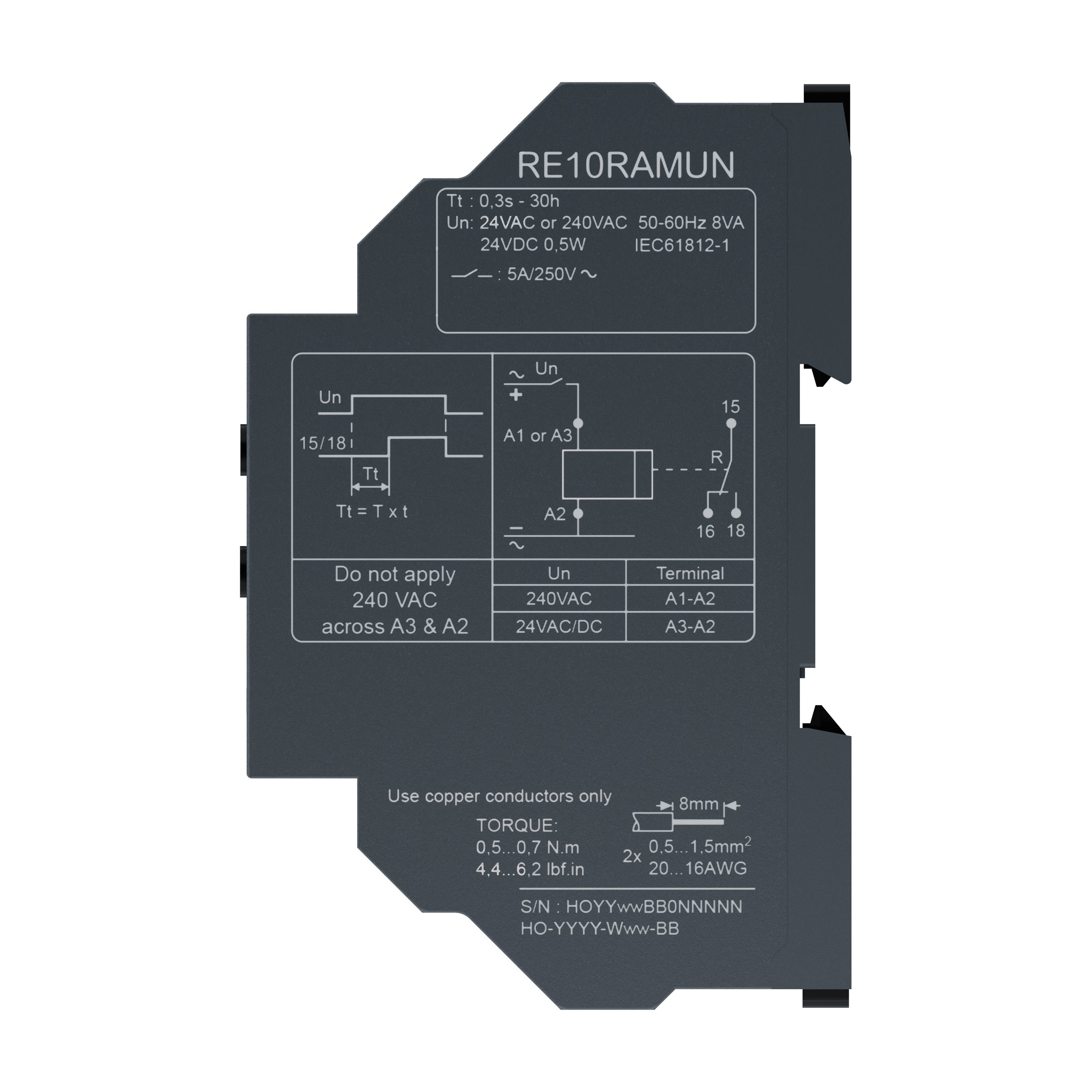 Schneider Electric - Harmony Time RE10 - On Delay - fonction A - 1OF - 5A - 0/30H - 24VCC/A - 240VCA - RE10RAMUN