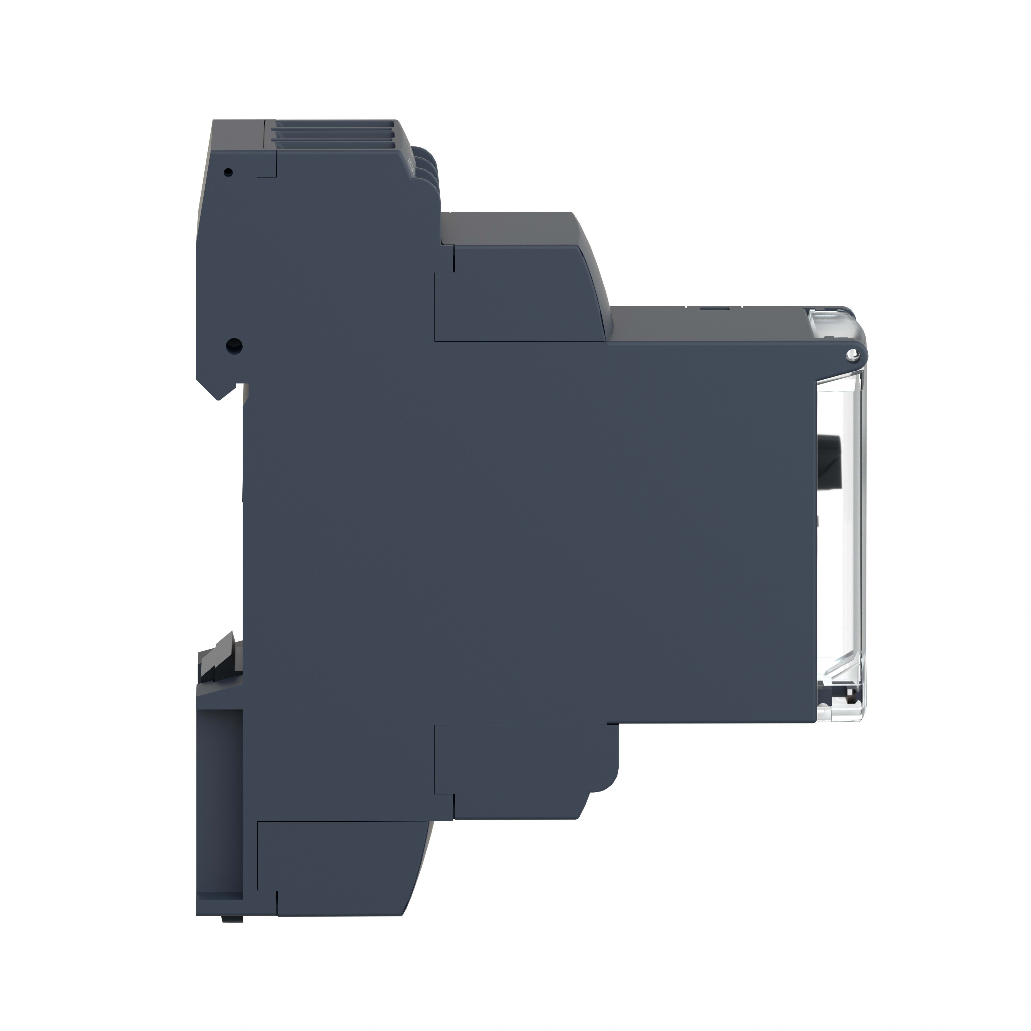 Ce relais de temporisation à double fonction Harmony RE22 peut être réglé entre 1 seconde et 300 heures et dispose d'une puissance nominale de 8 ampères. Il contrôle la synchronisation dans les systèmes d'automatisation tels que l'ouverture automatique des portes, l'alarme, l'éclairage des toilettes et les barrières de parking. Il possède l'un des formats les plus fins du marché avec une largeur de 22,5mm, permettant une installation flexible et facile sur rail DIN, en utilisant le même espace que n'importe quel appareil DIN modulaire à 2 pôles. Sa minuterie double fonction permet une intégration simple dans les schémas logiques câblés, idéale pour la rénovation d'anciennes installations sans automate.