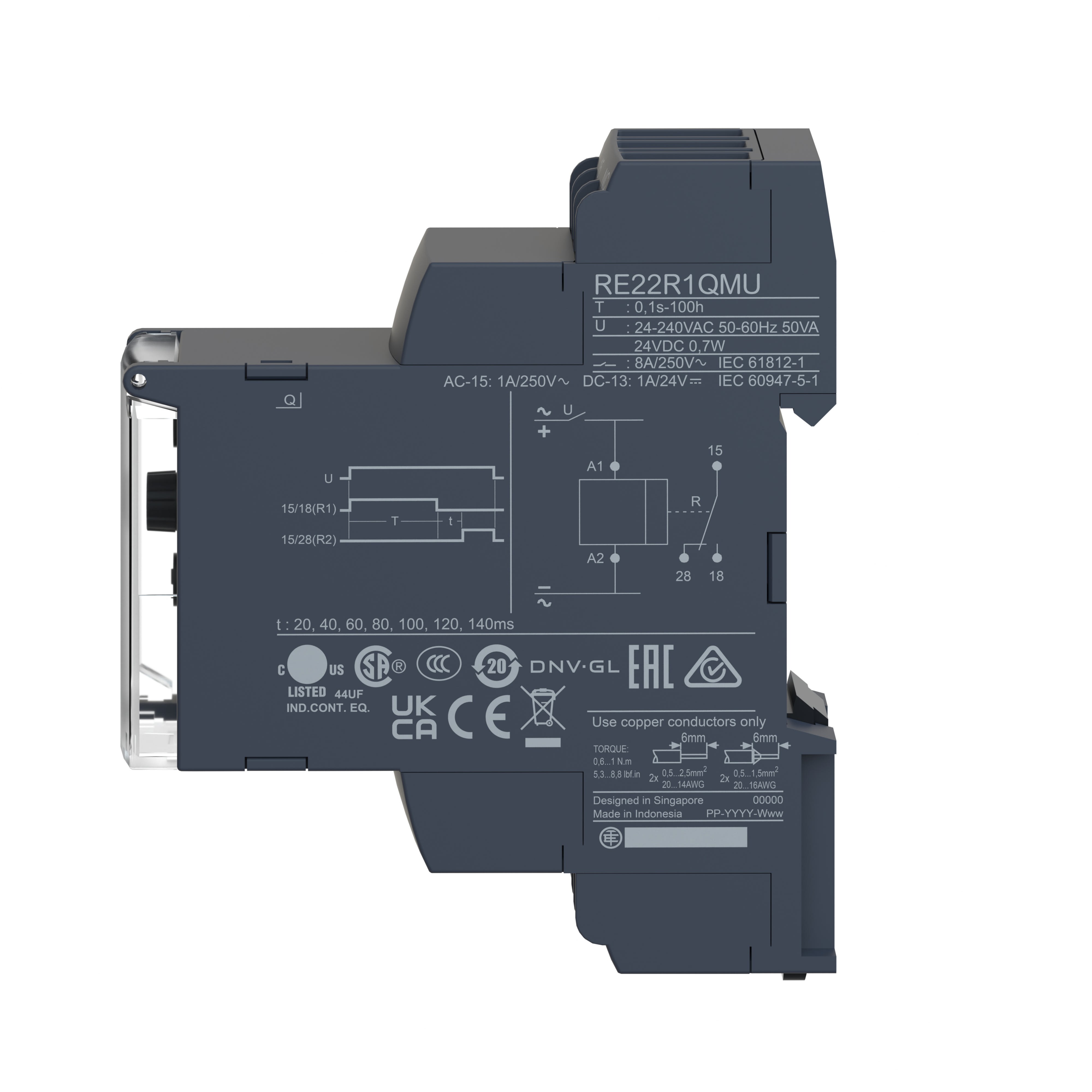 Schneider Electric - Harmony Time RE22 - relais tempo - 1OF - Q - 1s à 100h - 24VDC/24V à 240VAC - RE22R1QMU