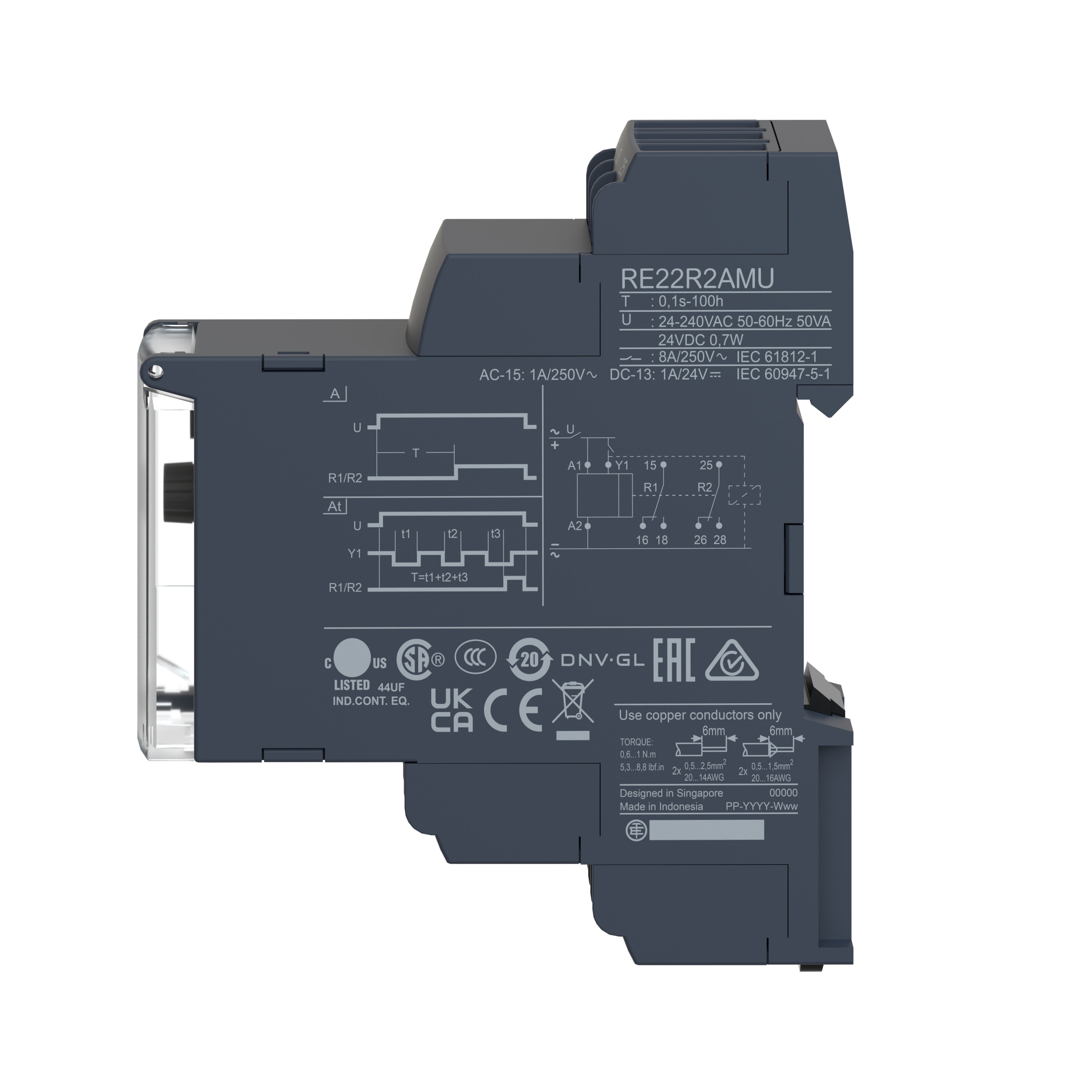 Schneider Electric - Harmony Time RE22 - relais tempo - 2OF - A At - 1s à 100h - 24VDC/24V à 240VAC - RE22R2AMU