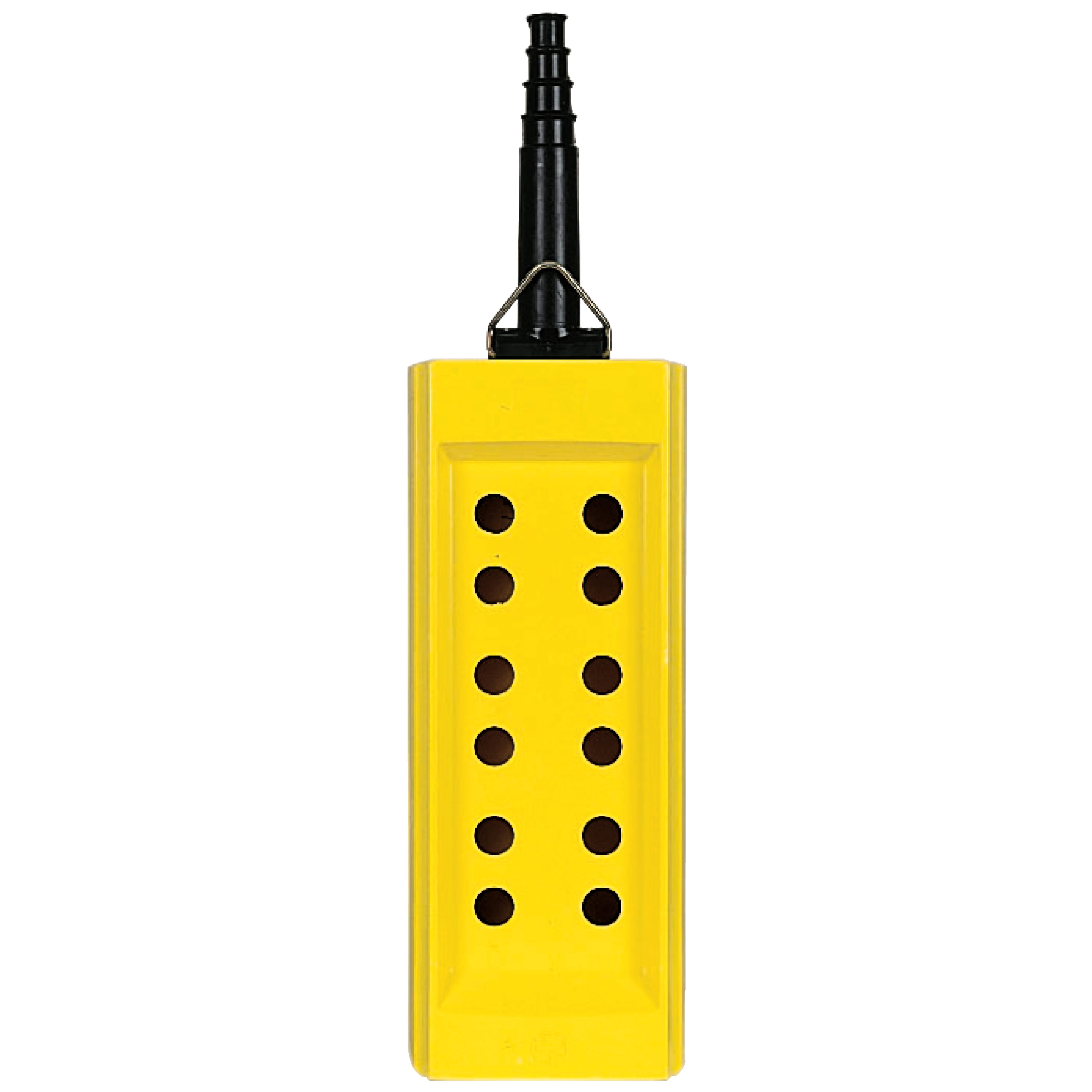 Cette boîte pendante vide Harmony XACB12 a 12 ouvertures sur 2 colonnes. Ce poste de commande jaune est à double isolation. Il fait partie de la gamme de boîtes pendantes Harmony XAC pour les unités de signalisation en plastique de diamètre 22 mm.