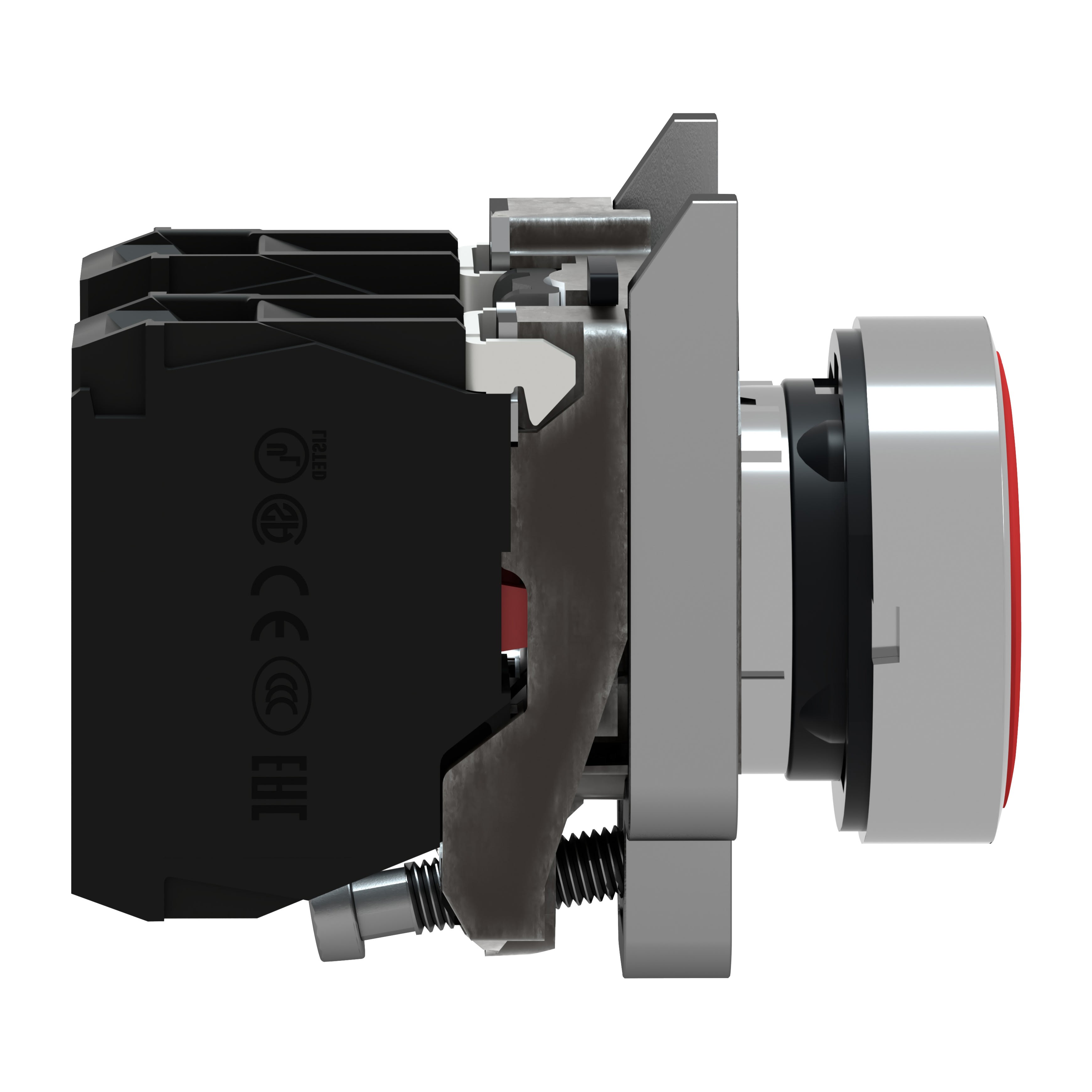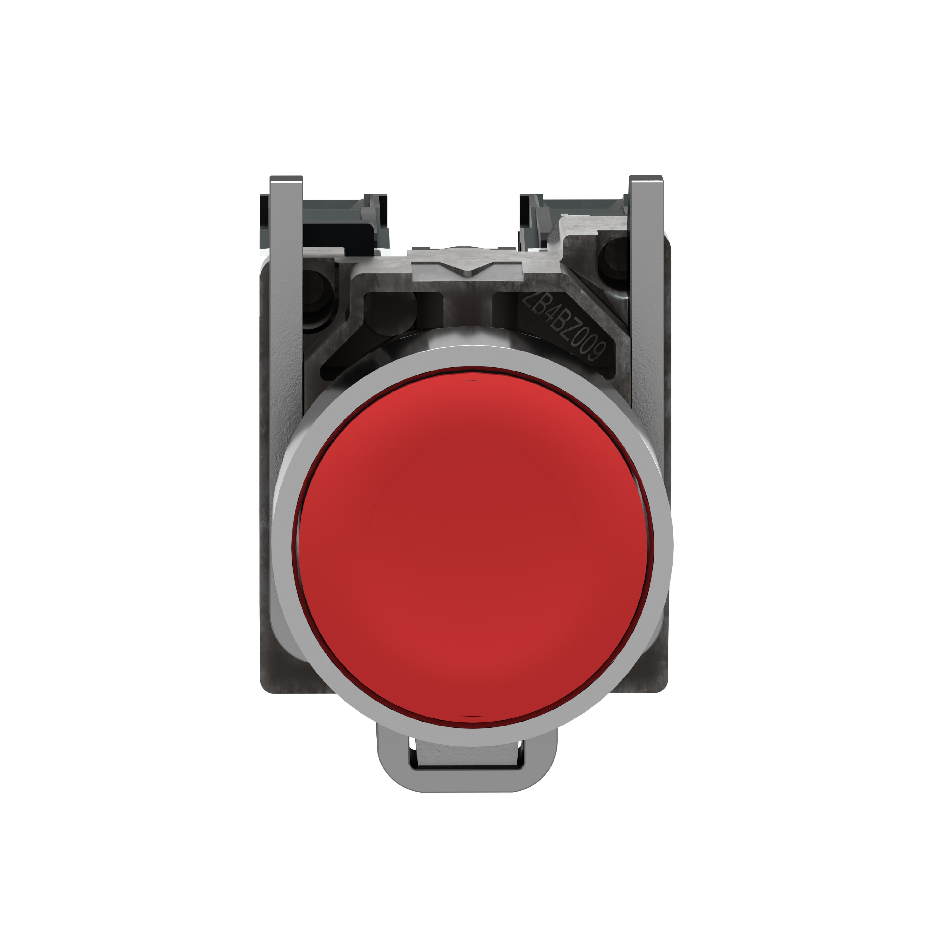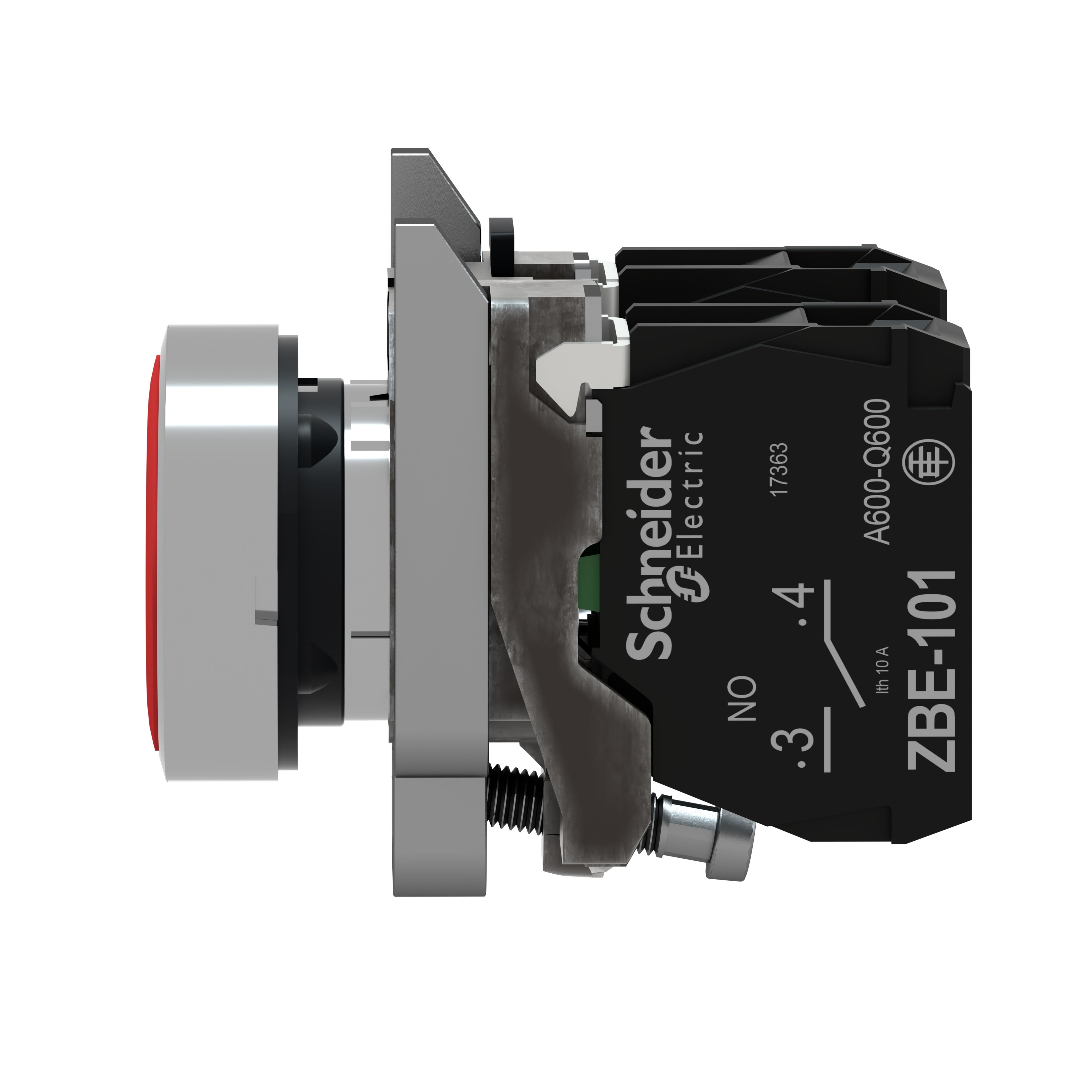 Harmony XB4 - bouton poussoir - à impulsion - poussoir affleurant - rouge - Ø22 - collerette dépassante - métal chromé - 1O+1F - fixation Ø22 - raccordement par vis-étrier