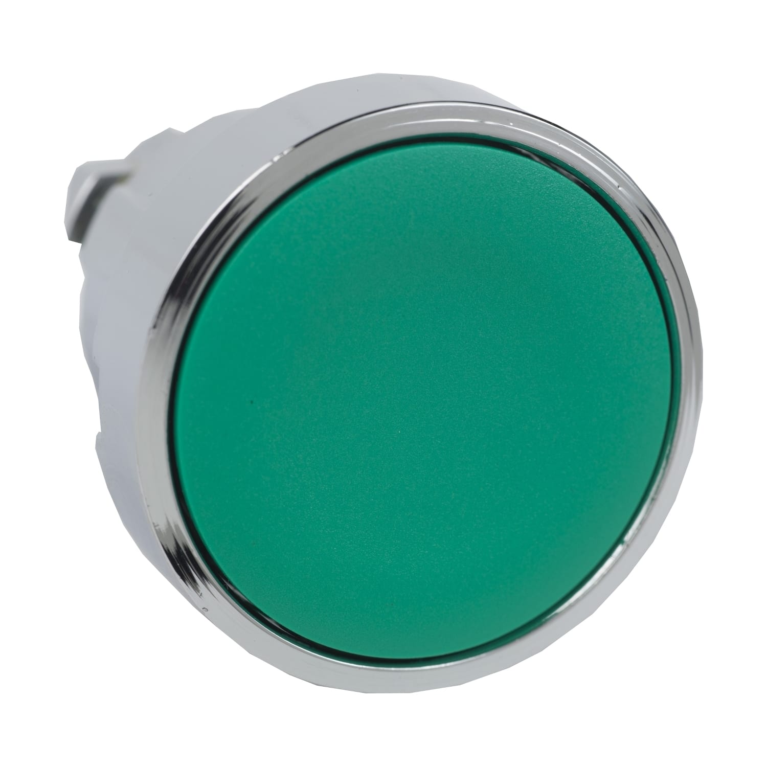 Harmony XB4 - tête de bouton poussoir - pousser-pousser - poussoir affleurant - vert - Ø22 - collerette dépassante - métal chromé - fixation Ø22