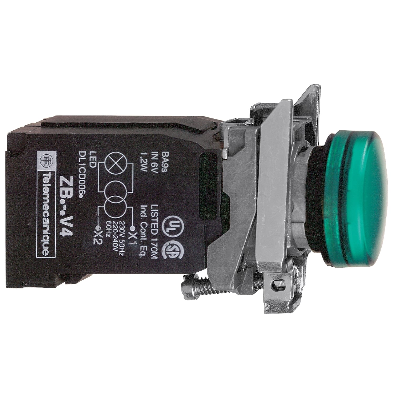 Schneider Electric - Harmony XB4 - voyant lumineux BA9s - Ø22 - vert - direct 250V max - vis étrier - XB4BV63