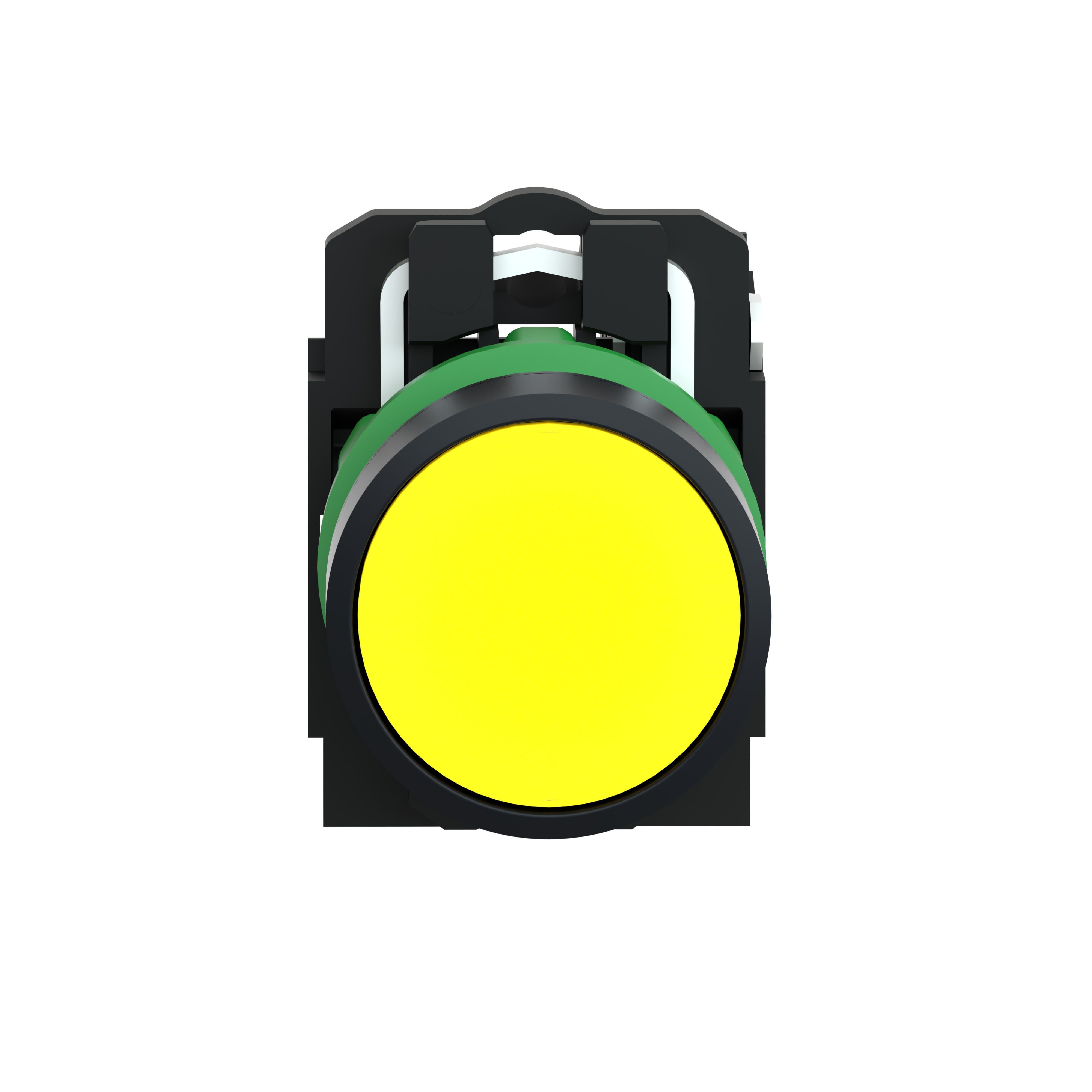 Harmony XB5 - bouton poussoir - à impulsion - poussoir affleurant - jaune - Ø22 - collerette dépassante - plastique noir - 1F - fixation Ø22 - raccordement par vis-étrier