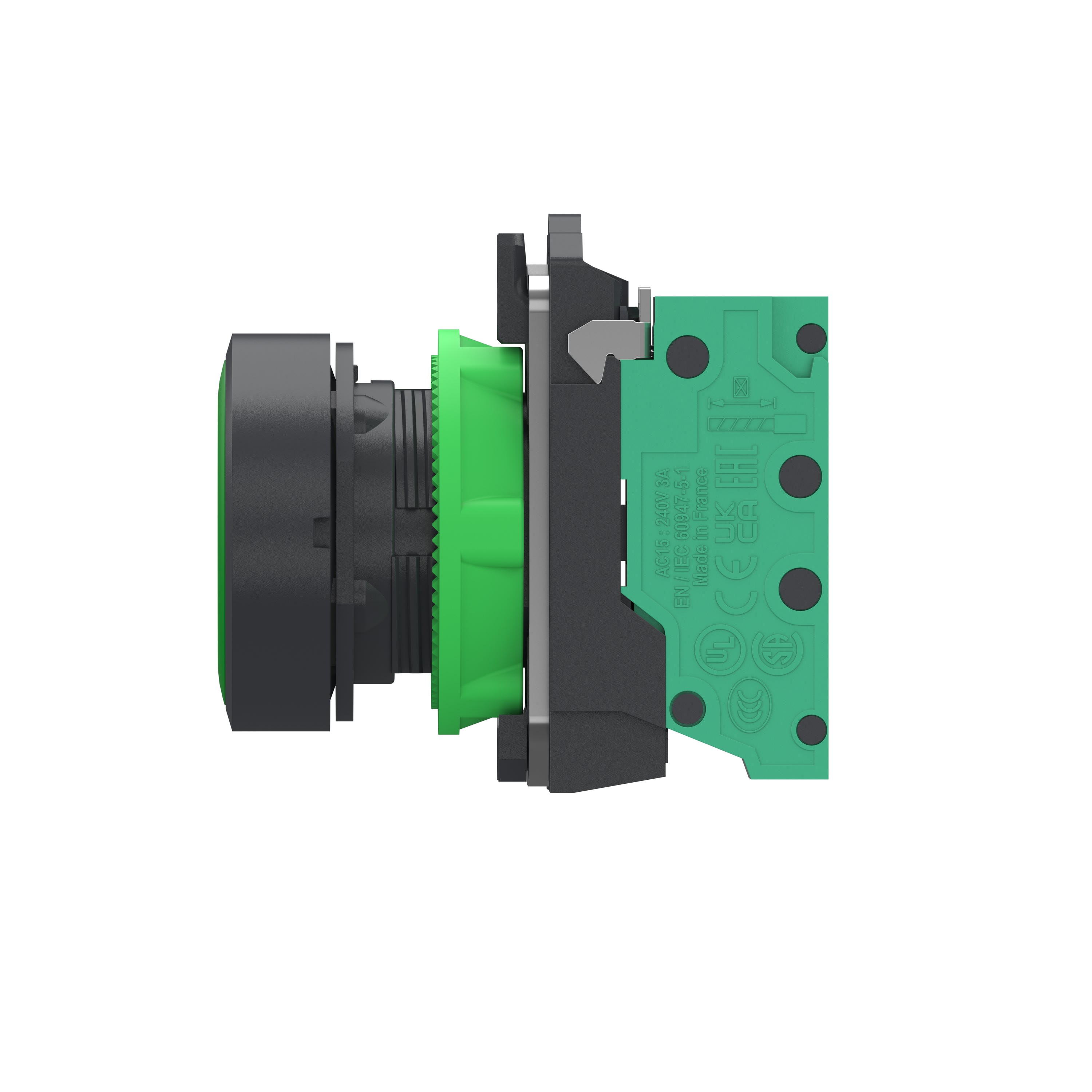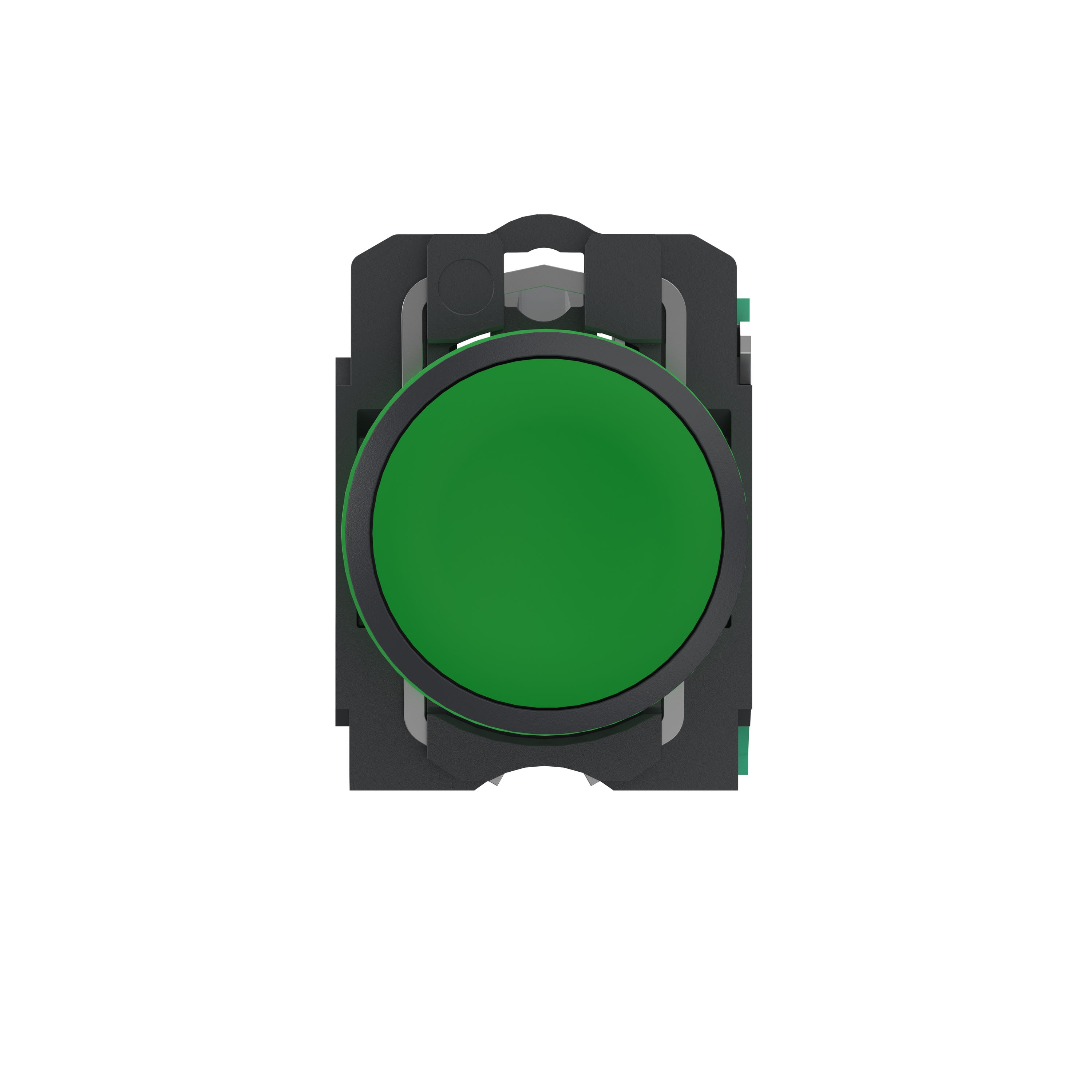 Harmony XB5 - bouton poussoir - à impulsion - poussoir affleurant - vert - Ø22 - collerette dépassante - plastique noir - 1F - fixation Ø22 - raccordement parPush In