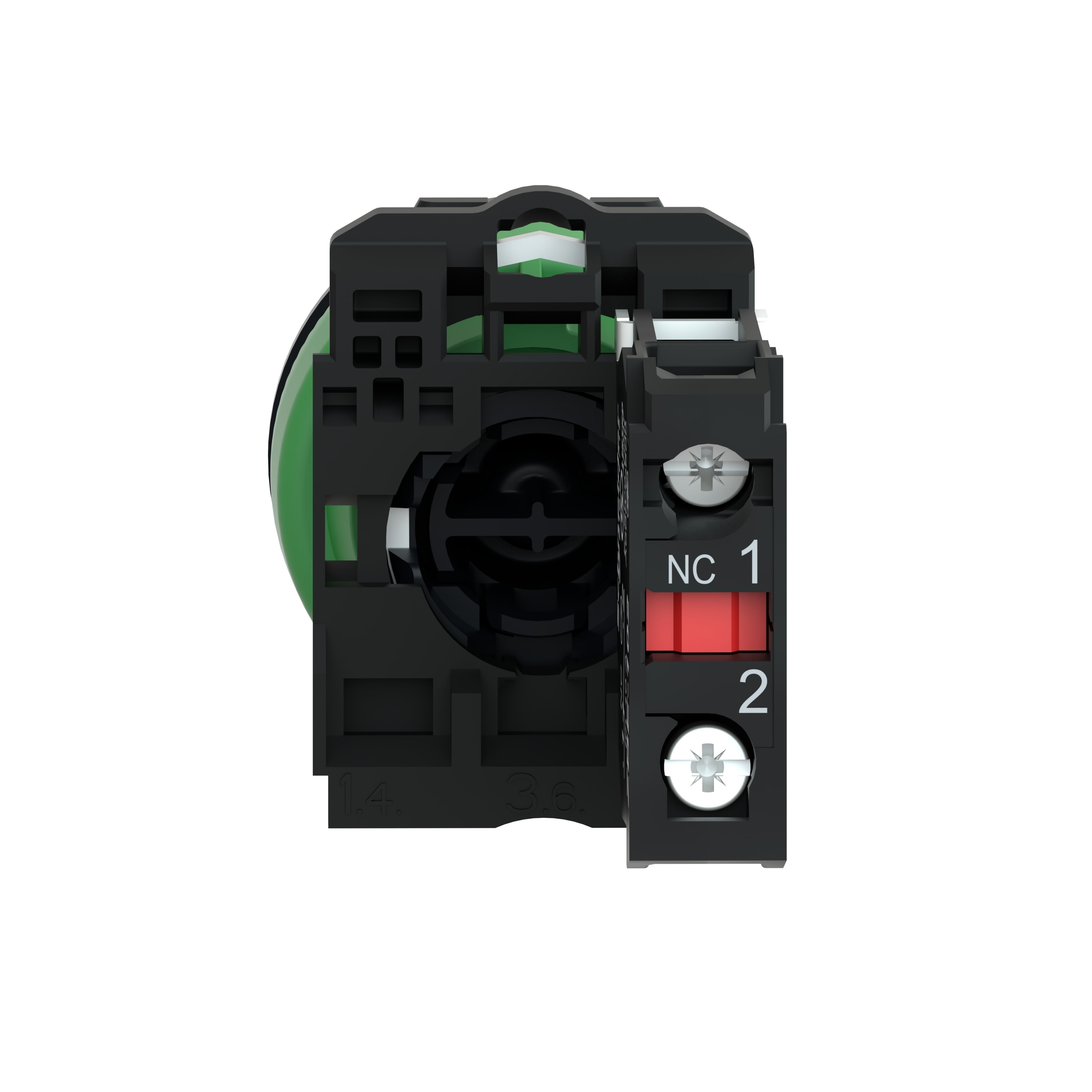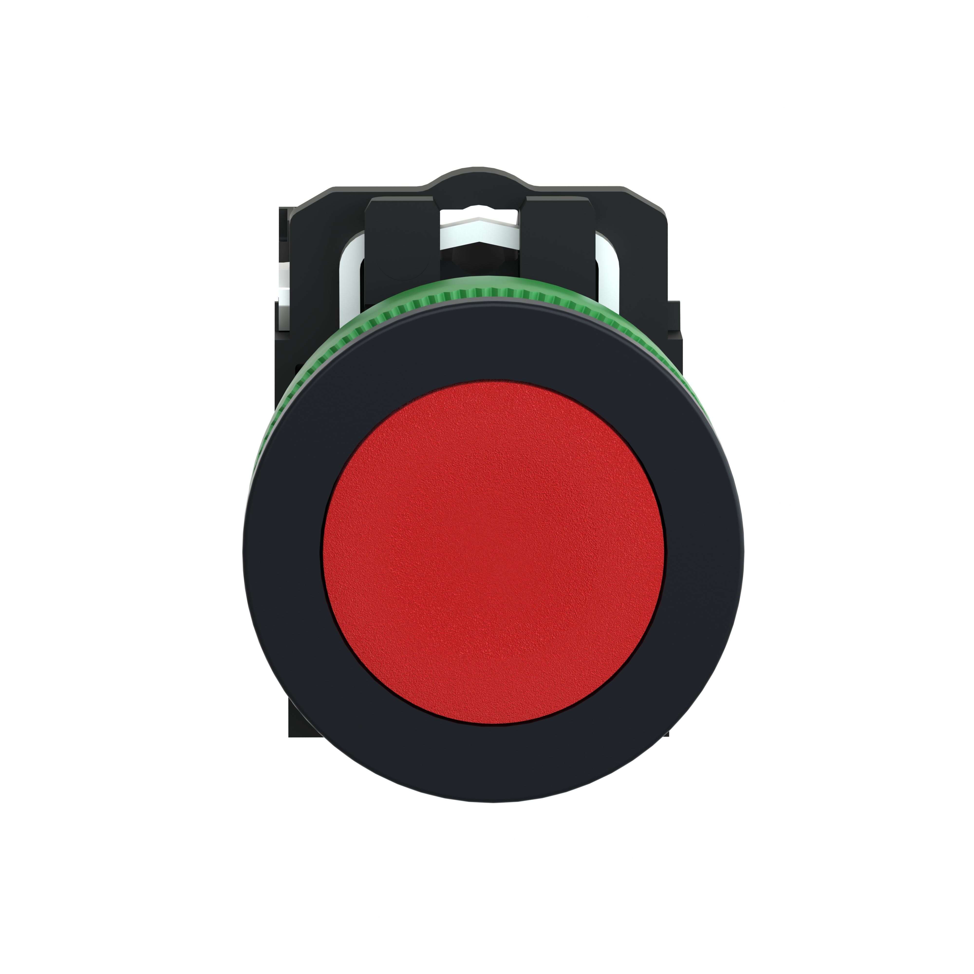 Harmony XB5 - bouton poussoir - à impulsion - poussoir affleurant - rouge - Ø22 - collerette affleurante - plastique noir - 1O - fixation Ø30 - raccordement par vis-étrier
