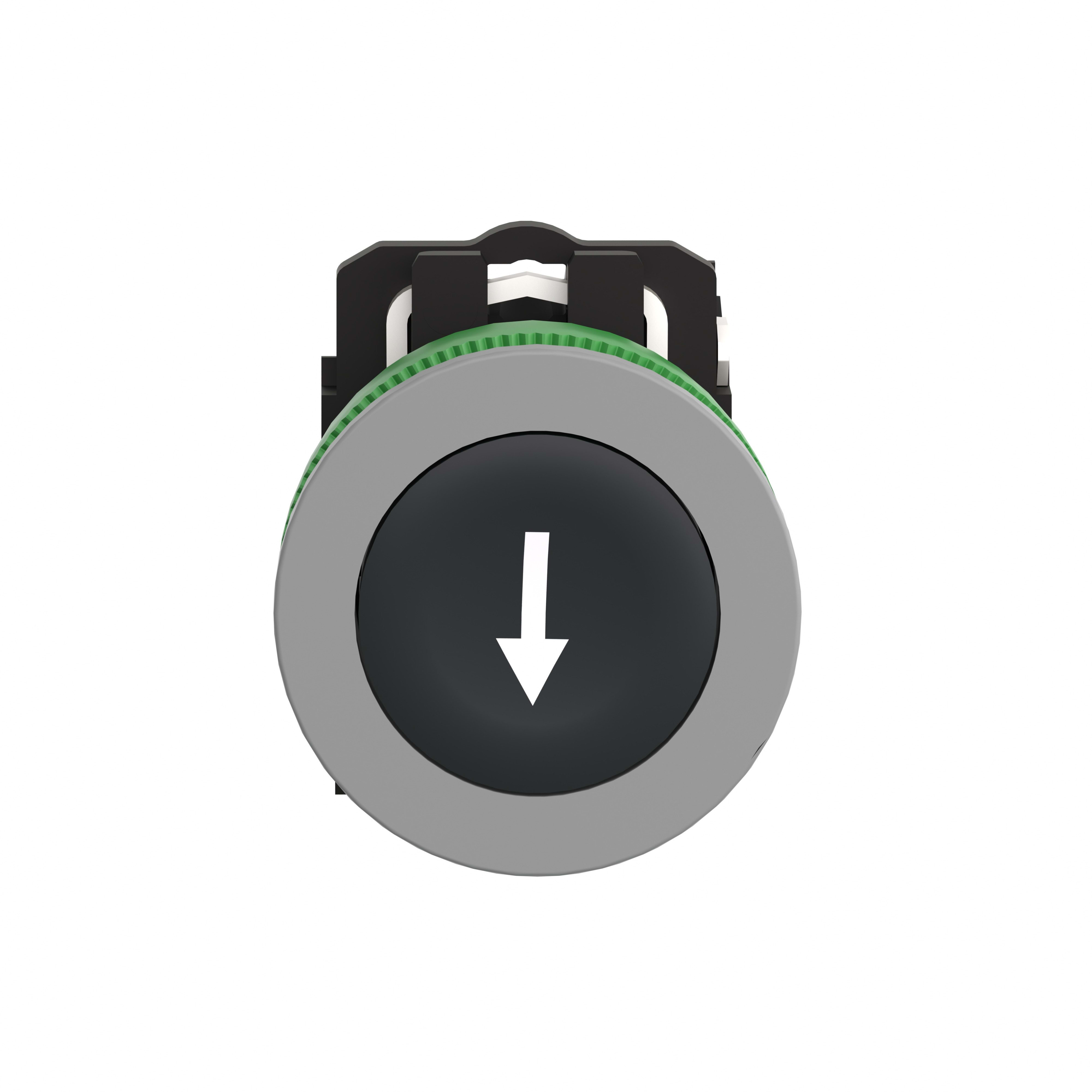 Harmony XB5 - bouton poussoir à impulsion - poussoir affleurant - vert - avec marquage - Ø22 - collerette affleurante - plastique gris - 1F - fixation Ø30 - raccordement par vis-étrier