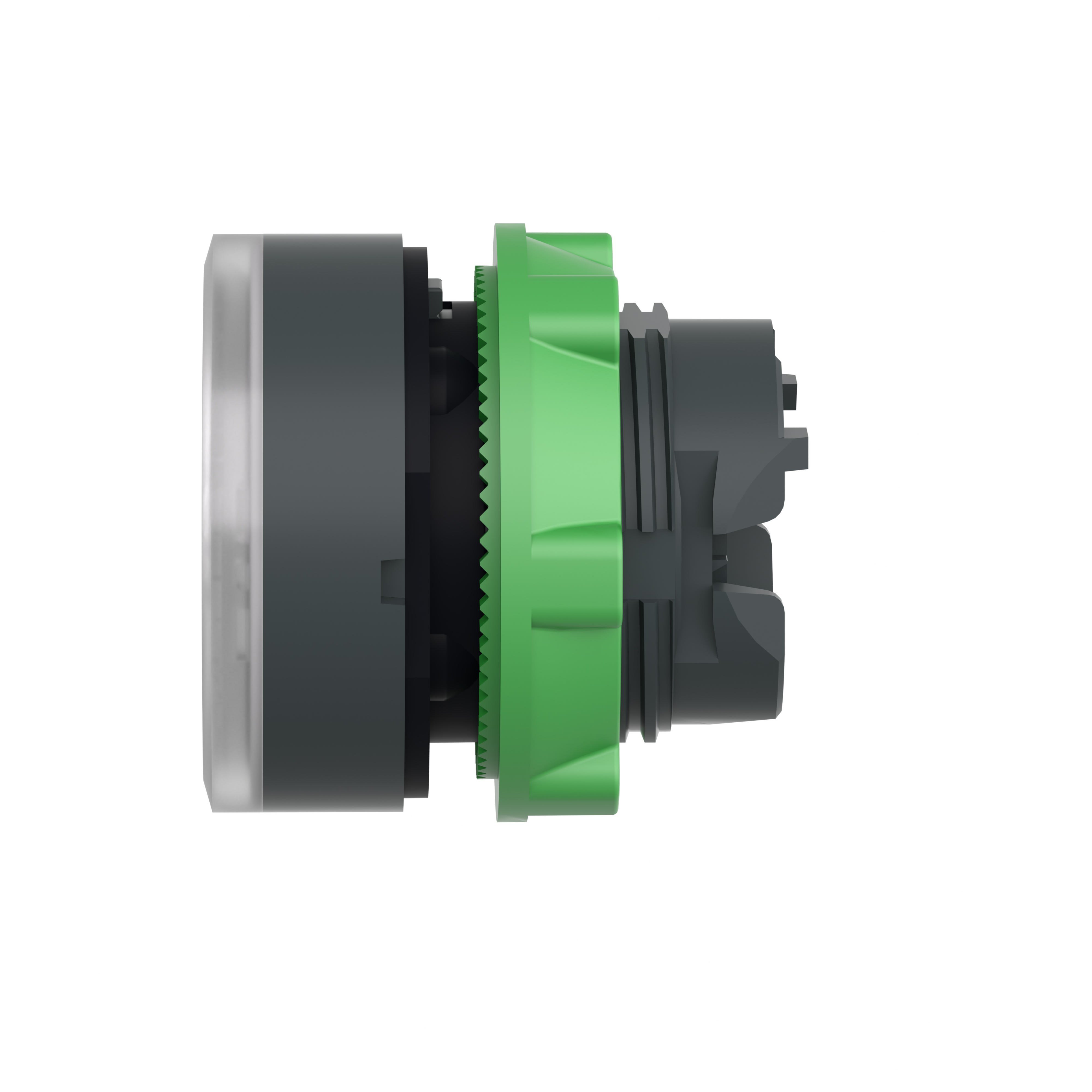 Harmony XB5 - tête de bouton poussoir - à impulsion - lumineux - pour DEL intégrée - poussoir affleurant lisse - blanc - Ø22 - collerette dépassante - plastique noir - fixation Ø22