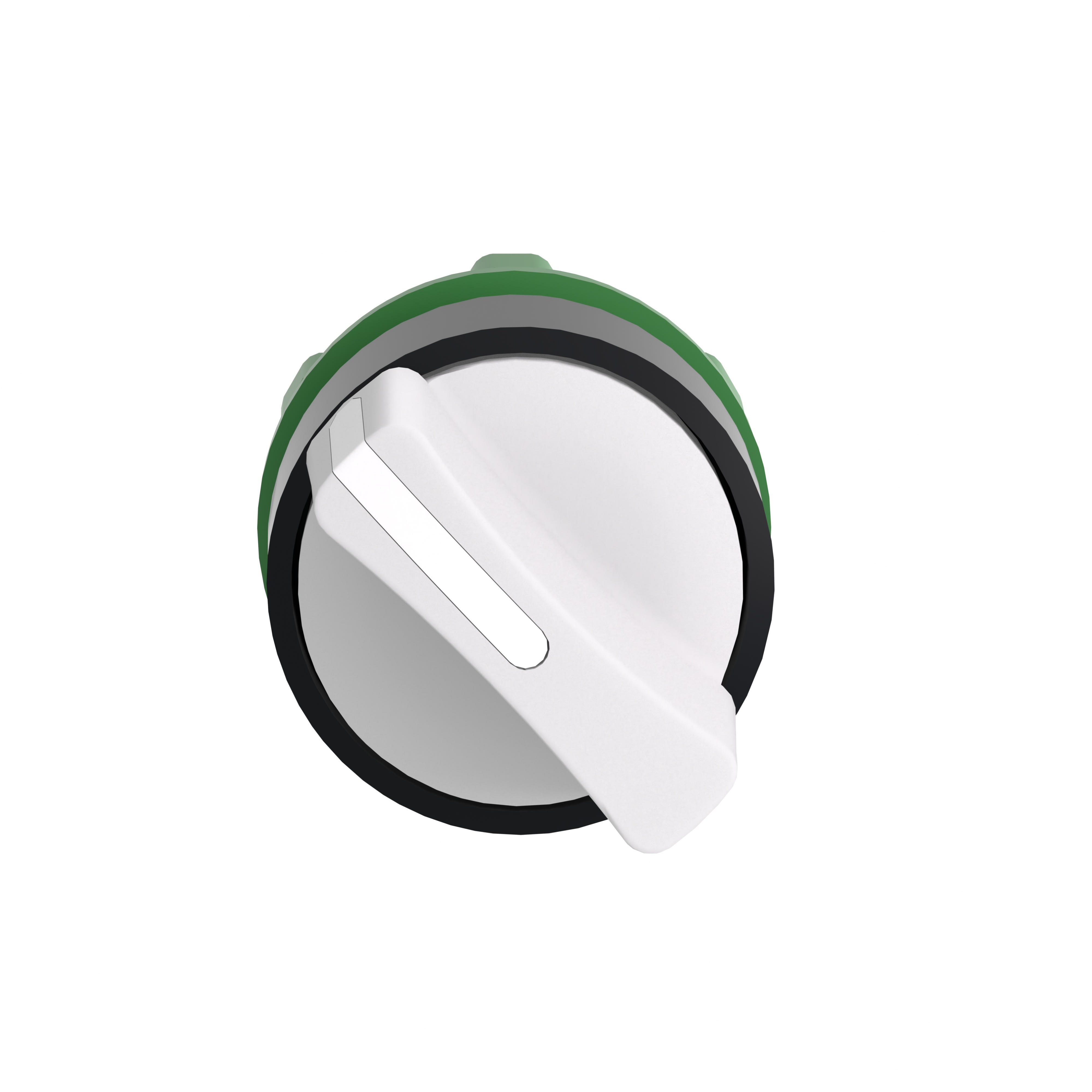 Harmony XB5 - tête de bouton tournant - à manette - blanc - Ø22 - collerette dépassante - plastique noir - 2 positions - fixes - fixation Ø22