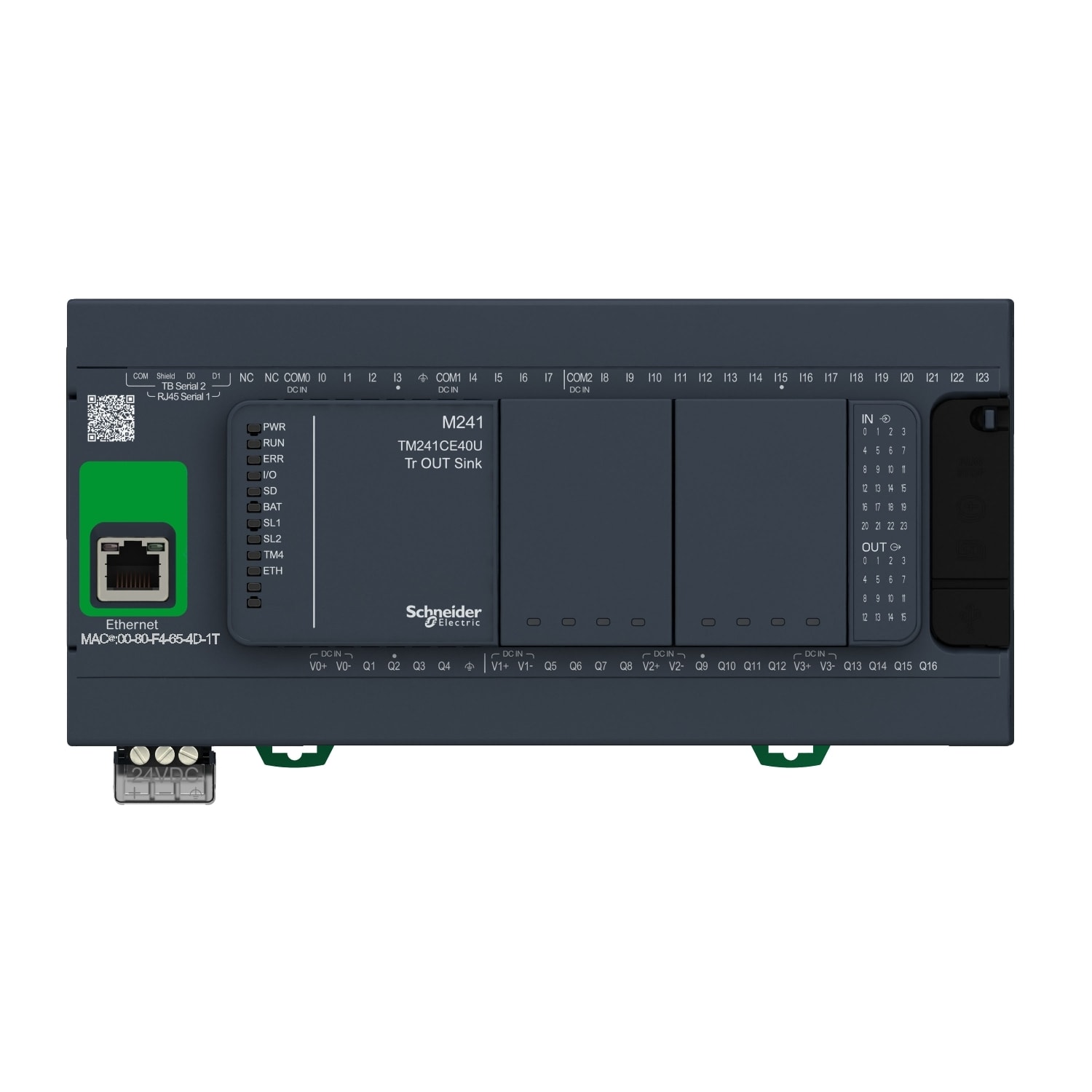 Schneider Electric - Modicon M241, contrôleur 40E/S NPN, ports Ethernet+2 série, 24VCC - TM241CE40U