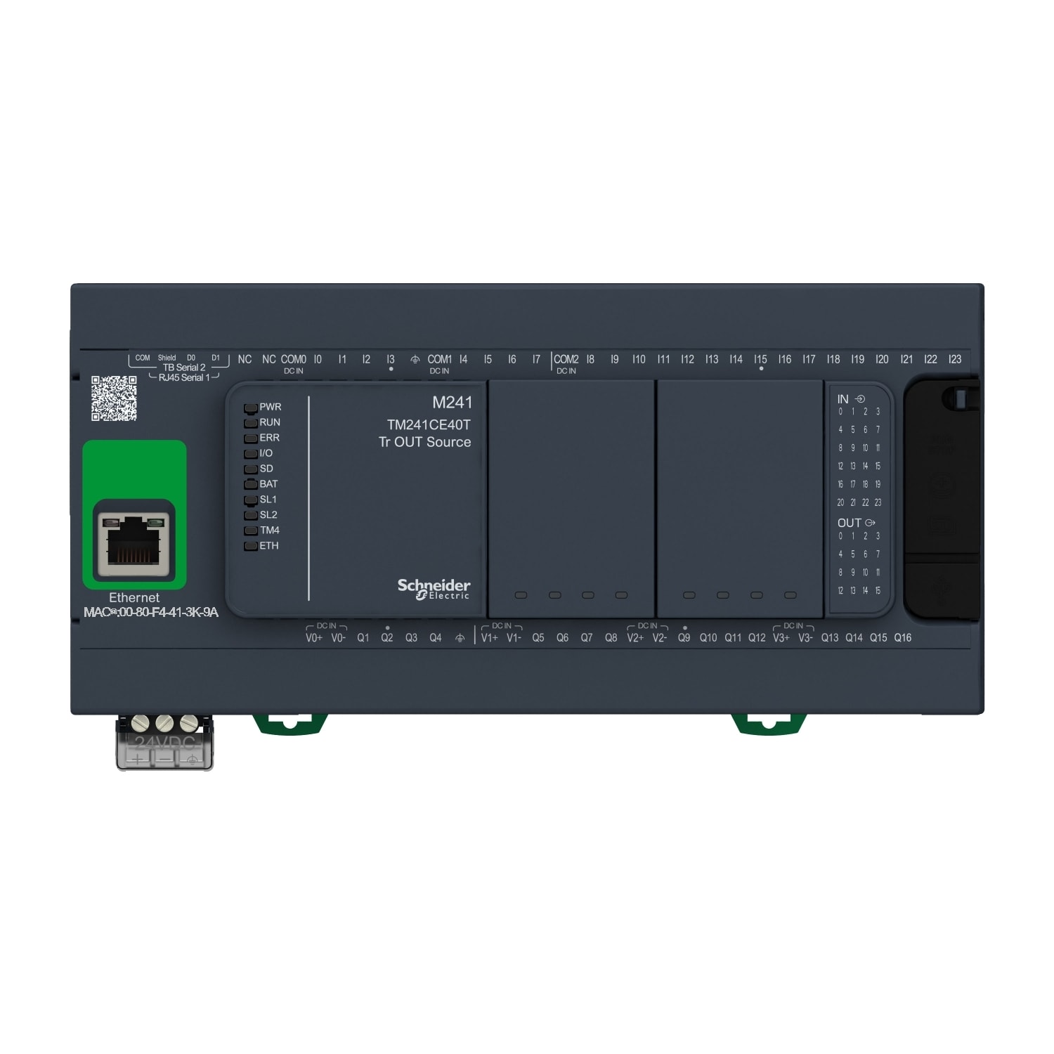 Schneider Electric - Modicon M241, contrôleur 40E/S PNP, ports Ethernet+2 série, 24VCC - TM241CE40T