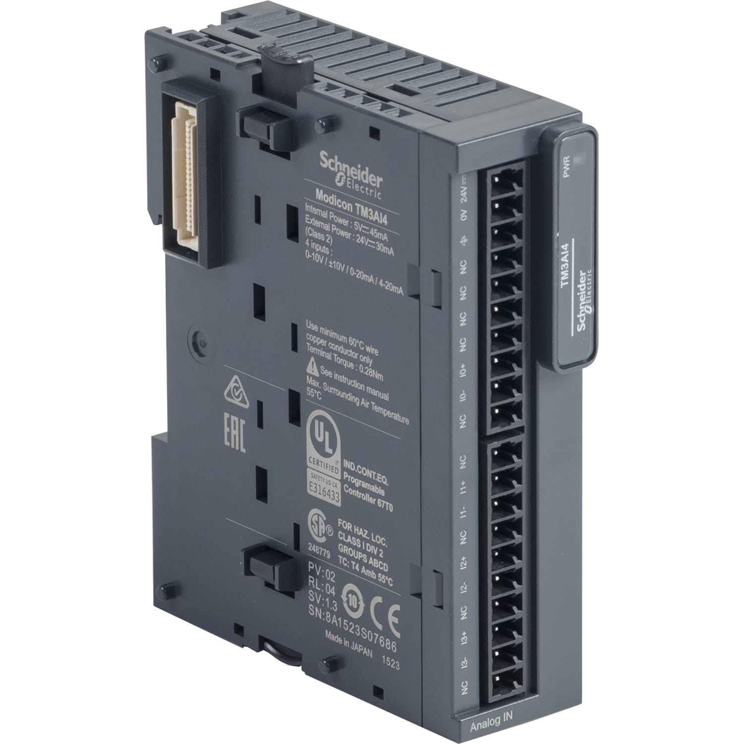 Schneider Electric - Modicon TM3, module 4 entrées analogiques, -10-0-10V, 0/4-20mA, vis - TM3AI4