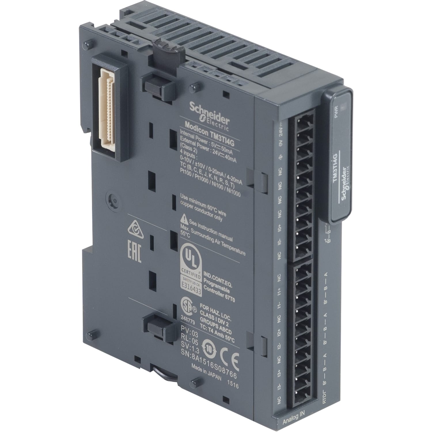 Schneider Electric - Modicon TM3, module 4 entrées température, sonde ou -10-0-10V, 0/4-20mA, ressort - TM3TI4G
