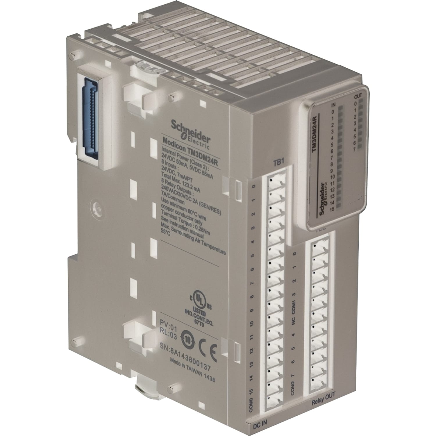 Schneider Electric - Modicon TM3, module mixte 16 entrées 24VCC/8 sorties relais 2A, à vis - TM3DM24R