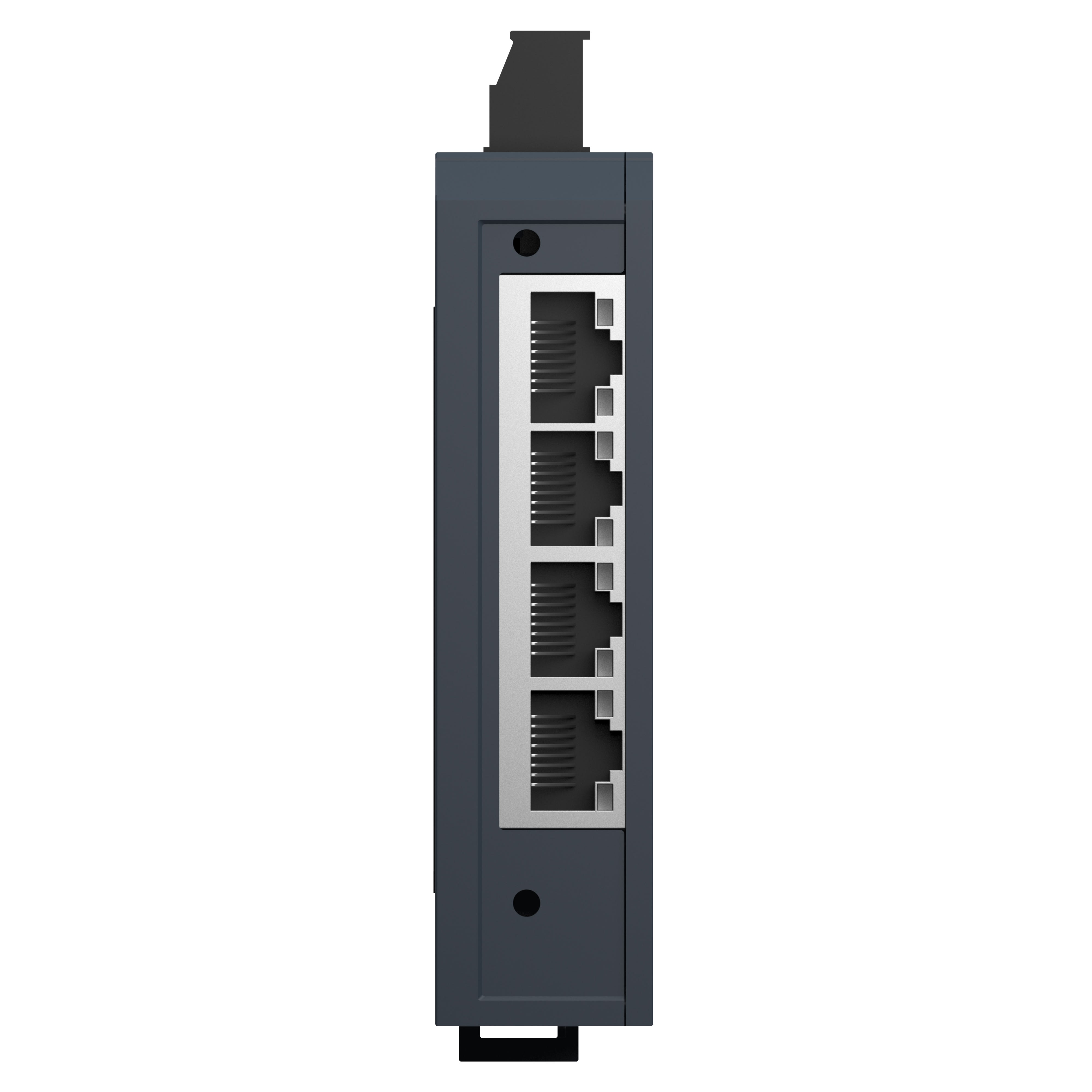 Ce produit fait partie de la gamme Modicon Networking, une offre de switchs non managés.. Ce commutateur non géré est fourni avec le protocole Ethernet TCP/IP. Il est livré avec 4 ports en cuivre et 1 port pour fibre optique multimode. Il offre une connectivité simple pour plusieurs appareils Ethernet et davantage d'options aux clients avec une application de niveau industriel. Ce produit fonctionne avec une consommation électrique de 2.4W et une tension nominale comprise entre 12V et 24V CC. Il est équipé d'un connecteur d'alimentation 3 broches amovible . Il dispose de connecteurs blindés adaptés aux petits réseaux isolés ou aux systèmes à faible trafic de réseaux et niveaux de complexité. Il est certifié CE, UL, RCM, UKCA, EAC, il est conforme aux normes UL 61010 et EN/IEC 61131. Il est conçu pour être monté sur un rail DIN symétrique. Il offre une faible consommation d'énergie et un encombrement compact. Il offre également une connectivité simple pour plusieurs équipements Ethernet. La gamme Modicon Networking offre un moyen intelligent et flexible d'intégrer des solutions Ethernet à votre exploitation, du niveau des équipements au réseau de contrôle et à votre réseau d'entreprise.