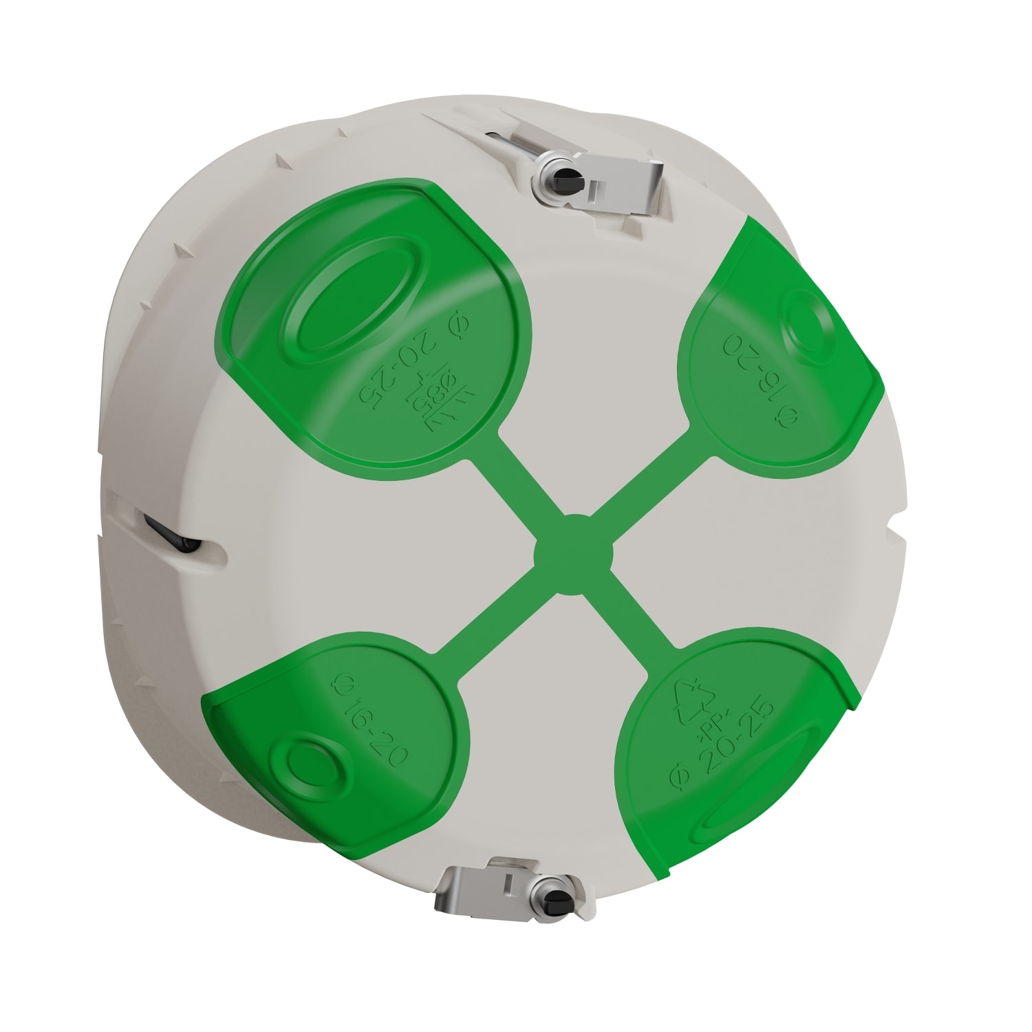 Cette boîte d'encastrement est conforme à la RT2012, la RE2020 ainsi qu'à la norme européenne EN60670-1. Sans halogènes, elle dispose d'un ratio de recyclabilité potentielle évalué à 79%.