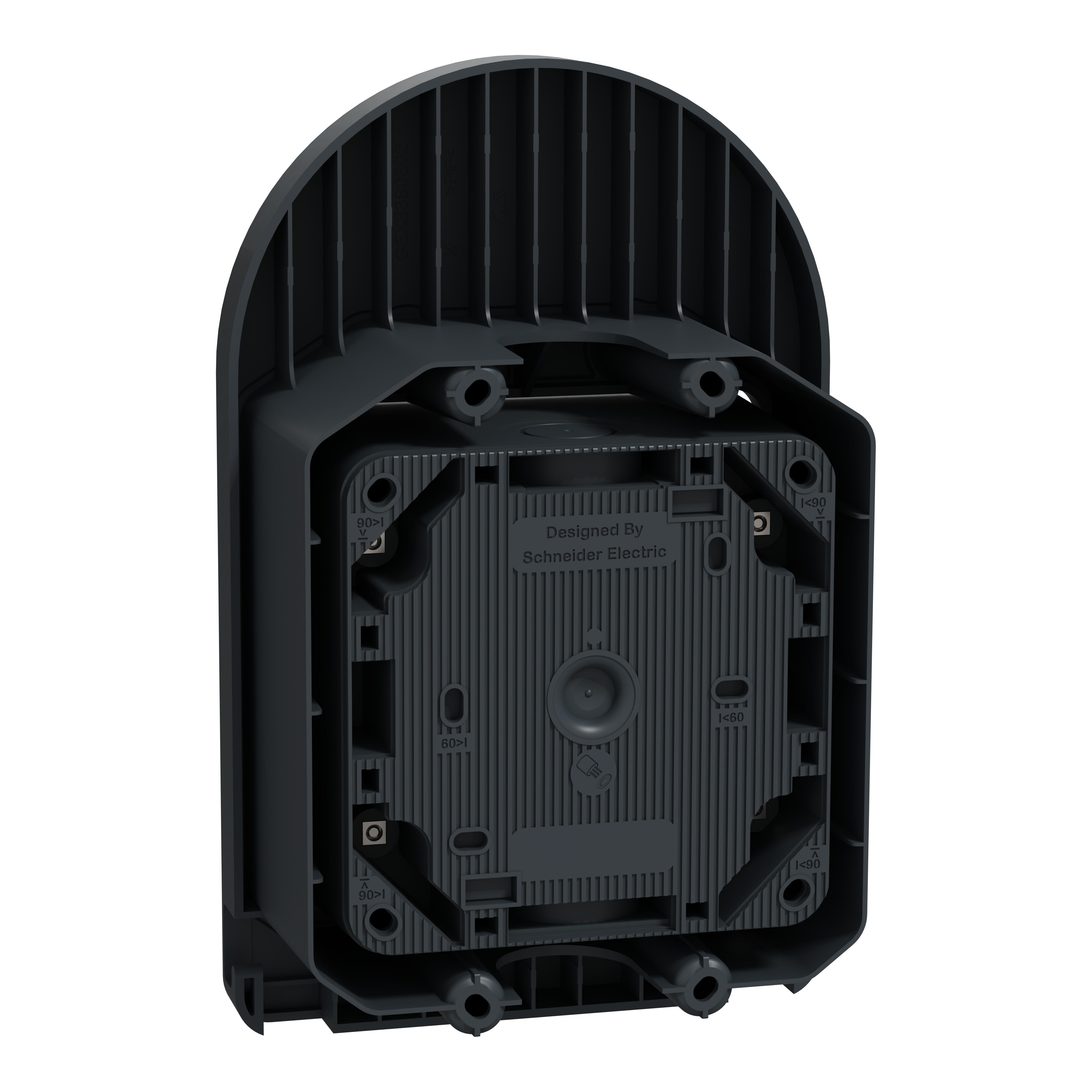Cette prise renforcée 16A / 250 V à verrouillage à clé, étanche IP66 et robuste IK08, permet de recharger un véhicule électrique ou hybride rechargeable. Limitant les échauffements, elle offre de nombreuses fonctionnalités pratiques. Pour une recharge en sécurité, elle propose un support de câble intégré, un indicateur lumineux, un accès par clé et est connectable au système de gestion de l'énergie du logement Wiser pour être pilotée (nécessite une passerelle). Elle ne requiert pas d'habilitation IRVE pour être installée. Son design tendance gris anthracite inspiré de la forme des bornes kilométriques françaises sublimera votre installation intérieure ou extérieure ! MUR36015 est un produit complet livré prêt à l'emploi : boitier saillie avec entrées de câbles, prise renforcée 2P+T à éclipses, clapet transparent avec icône et verrou, 2 clés, support de câble avec crochets, presse étoupe et bouchons. Il est recommandé d'installer cette prise renforcée sur une ligne dédiée et protégée par un disjoncteur différentiel dans le tableau électrique. Cette prise renforcée permet une grande ergonomie de câblage lors l'installation. Un gabarit de perçage, inclus dans le packaging, facilite le perçage des 8 trous : 4 pour le boitier et 4 pour le support de câble (vis non fournies). Le boitier possède 3 entrées de câbles : haut, bas, arrière. Le presse étoupe fourni garantit l'IP66. Le mécanisme de la prise, à connexion à vis (3x2,5mm²), se clipse et se déclipse sans outil dans une zone étanche complète brevetée. Son clapet se fixe à l'aide de 4 vis filetées métalliques (fournies et imperdables) assurant une robustesse et étanchéité durables dans le temps. Des bouchons sont fournis pour parfaire l'installation du support. Ce produit est certifié 8A VE (NF C 61-314) et homologué 16A renforcée (IEC 60884-1). Il est certifié Green Premium, l'écolabel qui s'engage à des performances durables et respectueuses de l'environnement et présente une fiche PEP. Mureva EVlink propose une variante simple sans clé et une variante en kit avec disjoncteur différentiel pour faciliter votre achat et limiter les risques d'erreurs. Pour des recharges rapides, choisissez les bornes EVlink Home, EVlink Home Smart et EVlink ProAC de Schneider Electric ! Les prises renforcées Mureva EVlink allient facilité d'installation, praticité, et évolutivité. Pour la recharge lente des voitures électriques, elle vous offre la simplicité d'une prise, l'intelligence en plus ! Mureva EVlink propose une variante simple sans clé et une variante en kit avec disjoncteur différentiel pour faciliter votre achat et limiter les risques d'erreurs. Développée autour de la gamme reconnue Mureva Styl, les prises renforcées Mureva Styl et EVlink sont idéales pour la recharge de véhicules électriques qui parcourent jusqu'à 50 km par jour et pour toutes les hybrides rechargeables. Schneider Electric propose toute une solution de produits connectées Wiser, ainsi que de nombreux produits étanches et robustes pour compléter votre installation.
