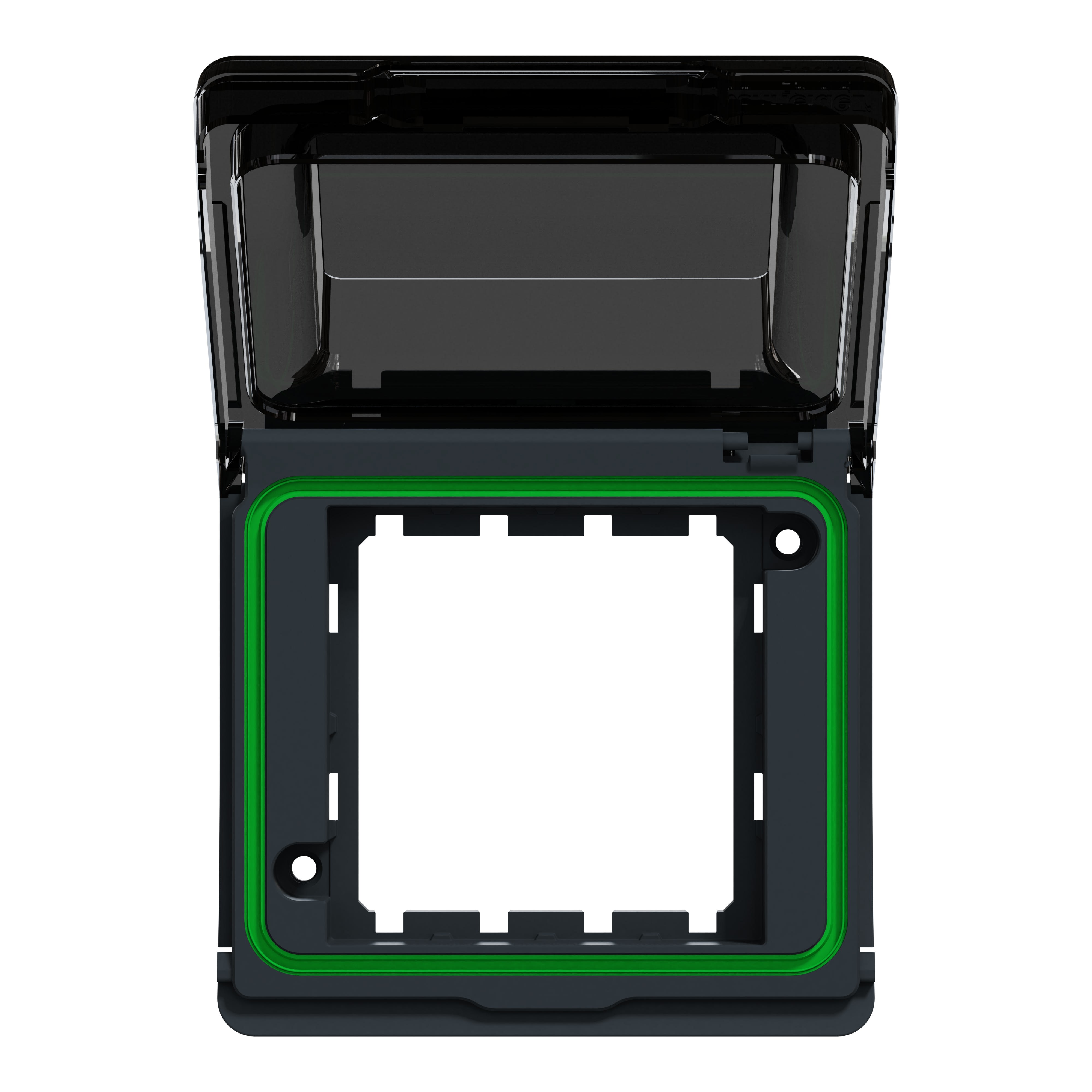 MUR35110 se compose d'un adaptateur étanche et robuste à ouverture 45x45 avec clapet transparent d'étanchéité. Il sera à associer avec une référence Unica compatible, et avec un boitier, pour une installation saillie, ou un cadre, pour une installation encastrée, de même couleur de préférence.
