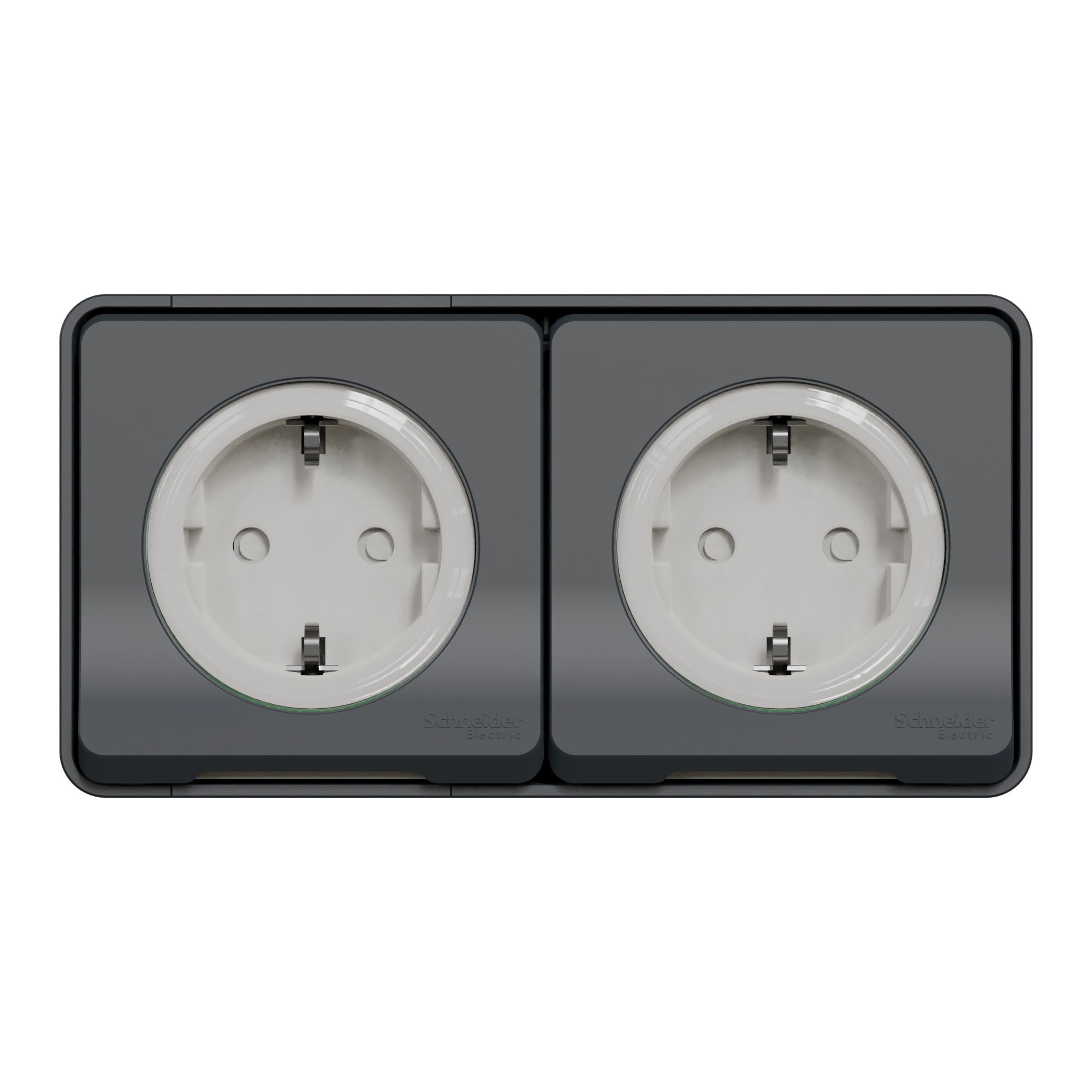Schneider Electric - Mureva Styl - Double PC 2P+T schuko précâblée horiz - saillie - IP55 IK08 - gris - MUR36029