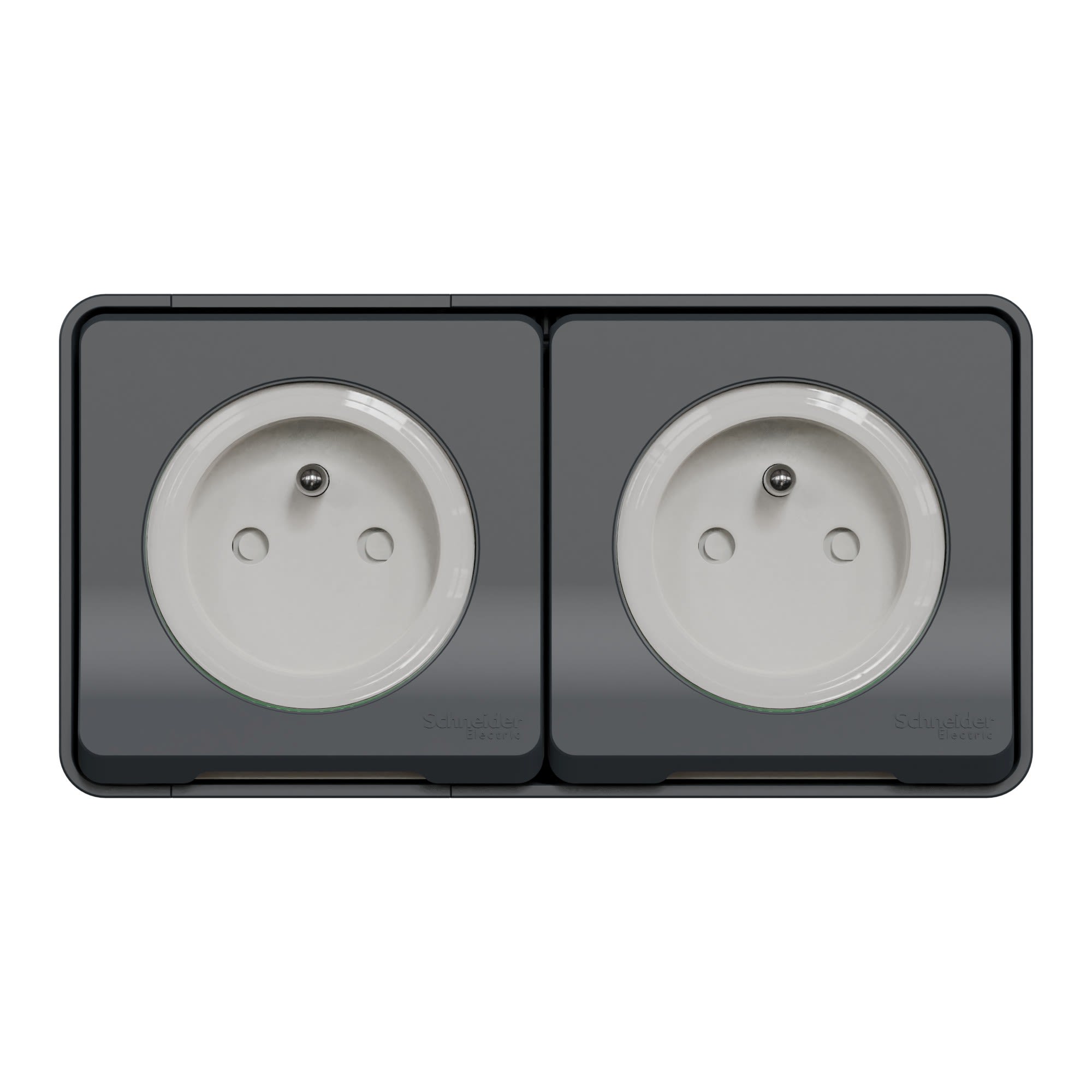 Schneider Electric - Mureva Styl - Double prise 2P+T précâblée horiz - saillie - IP55 - IK08 - gris - MUR36028