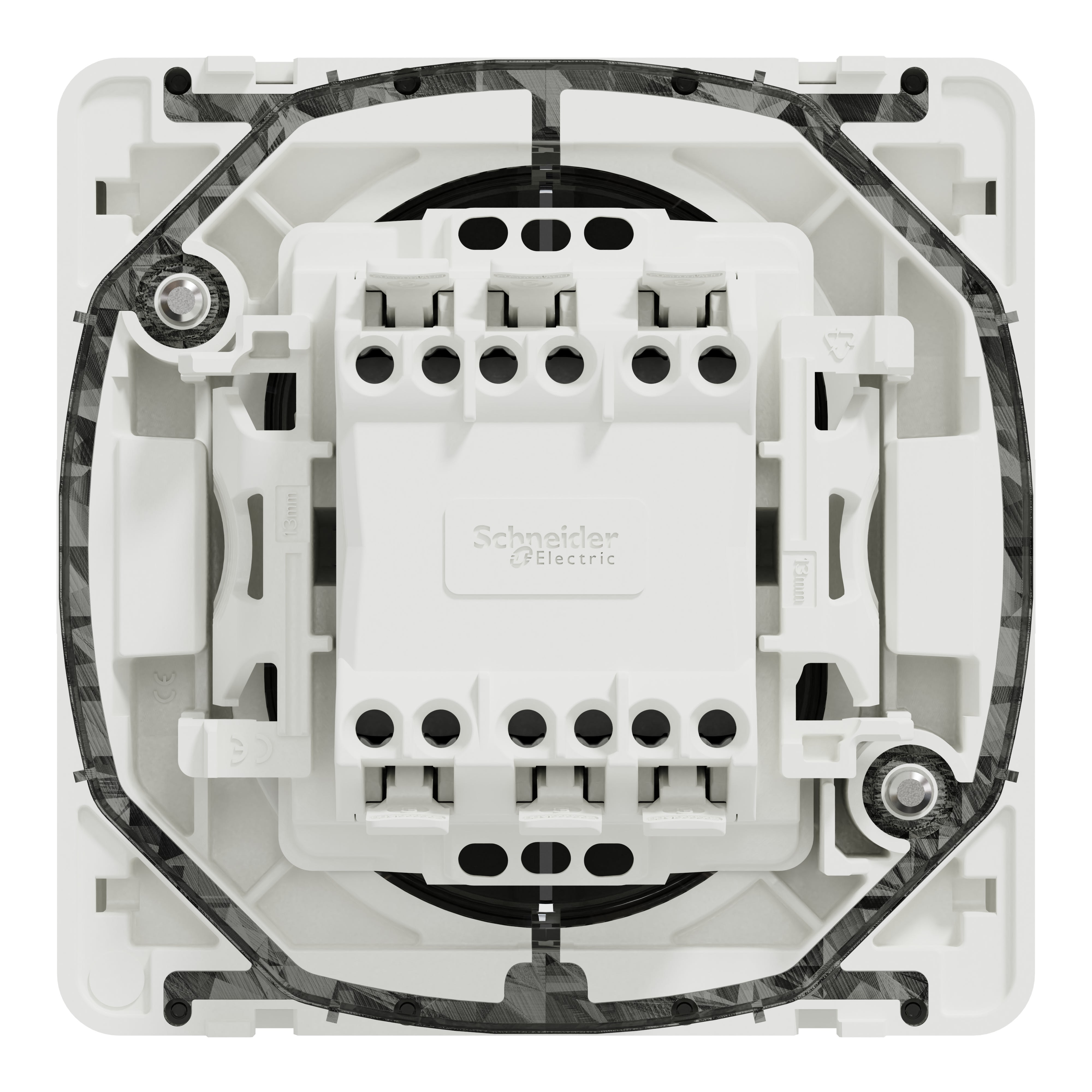 Cette référence vous promet une grande ergonomie de câblage lors de son installation. Le mécanisme de l'interrupteur, à connexion rapide, est fin, se clipse et se déclipse sans outil, prêt à être associé avec un boitier ou un cadre. Son doigt de commande double associé à une membrane d'étanchéité se fixe à l'aide de 2 vis filetées métalliques pour assurer une robustesse et étanchéité durables dans le temps.