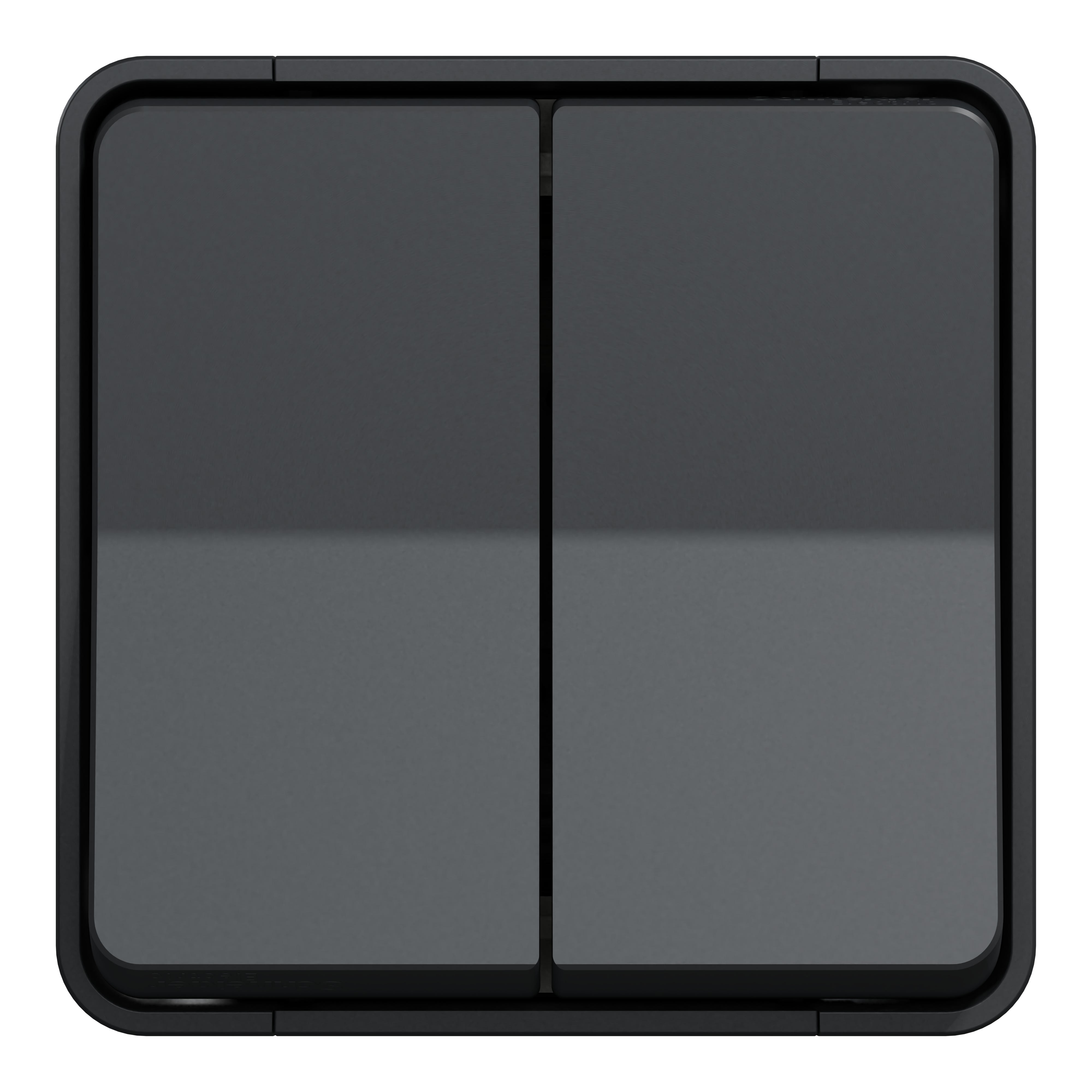 Ce double interrupteur ou double va-et-vient 10AX, en saillie, étanche IP55 et robuste IK08, permet de commander deux éclairages. Il s'adapte à des environnements intérieurs et extérieurs nécessitant une protection accrue contre la poussière, l'humidité et les chocs. Avec sa couleur tendance gris anthracite, il s'adaptera à toutes vos installations !