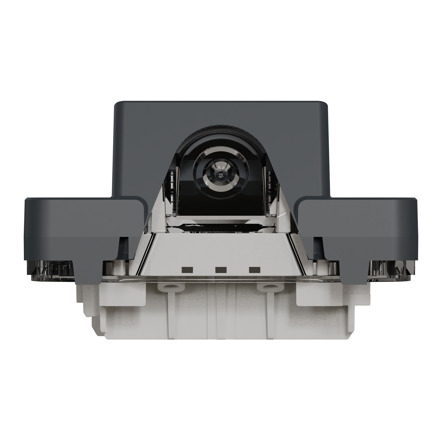 Le mécanisme de la sortie de câbles compatible avec les câbles du marché est prêt à être associé avec un boitier ou un cadre. L'enjoliveur se fixe à l'aide de 2 vis filetées métalliques pour assurer une robustesse et étanchéité durables dans le temps.