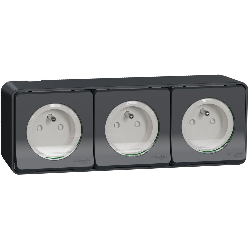 Schneider Electric - Mureva Styl - Triple PC 2P+T horiz. précâblée - saillie - IP55 - IK08 - gris - MUR36037