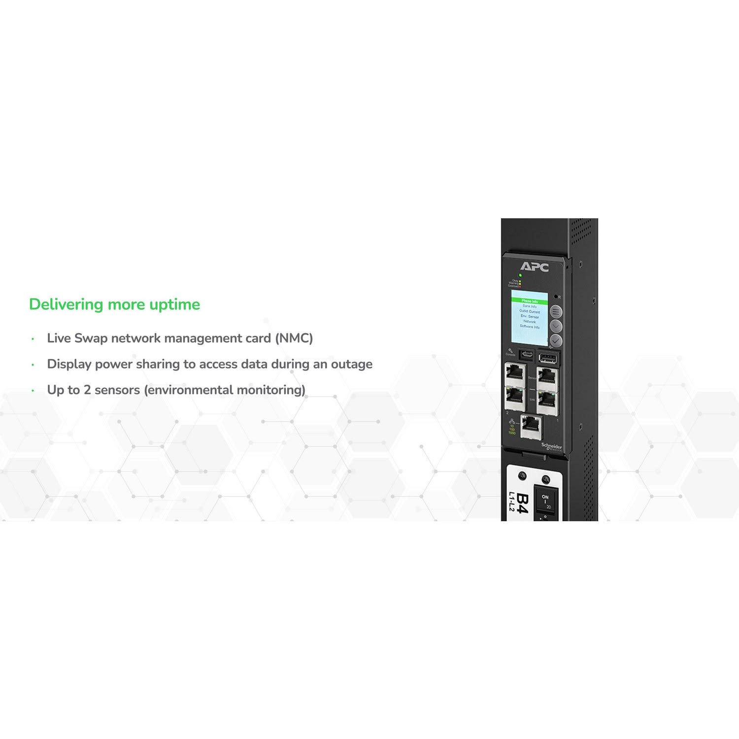 Ce module d'affichage de remplacement est compatible avec les unités de distribution de l'alimentation en rack NetShelter APC Advanced Gen 2 /Gen 1 (séries 11K et 10K) et contient une carte de gestion réseau 3 (la carte de gestion réseau APC nouvelle génération). La PDU en rack NetShelter Advanced fournit une distribution d'alimentation fiable à l'équipement informatique dans les racks de serveur et/ou réseau, idéale pour les applications haute densité. La plate-forme NMC est certifiée indépendamment par la norme IEC 62443-4-2 SL2 et s'intègre à EcoStruxure IT. Elle est accessible et configurable via le Web, SNMP et l'interface en ligne de commande (CLI). Associée à EcoStruxure IT, la carte de gestion réseau 3 permet aux professionnels de l'informatique de surveiller les capteurs et les alarmes, ainsi que de gérer les mises à niveau massives du micrologiciel, la configuration ou le contrôle des prises. Un port Gigabit Ethernet/réseau (10/100/1000) améliore et normalise la connectivité réseau. Deux ports de liaison peuvent être montés en cascade sur d’autres PDU, avec une fonctionnalité de partage de port réseau (NPS) qui permet le partage de l’alimentation entre les PDU en rack du groupe monté en cascade. Deux ports de capteur d'environnement permettent d'installer des capteurs en option pour la surveillance de l'environnement (vendus séparément). Le port console (micro USB) connecte la PDU en rack à votre ordinateur pour un accès local à l’interface de ligne de commandes.