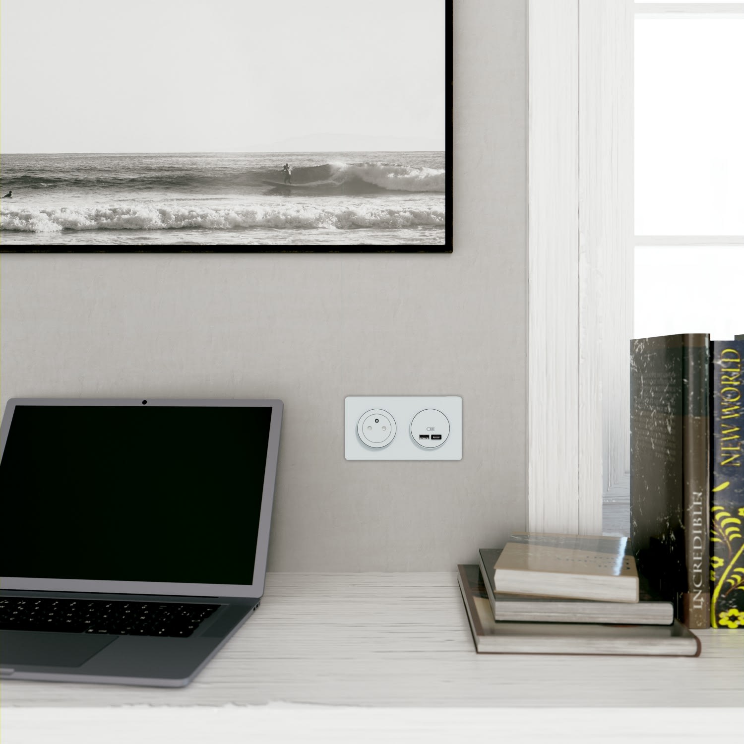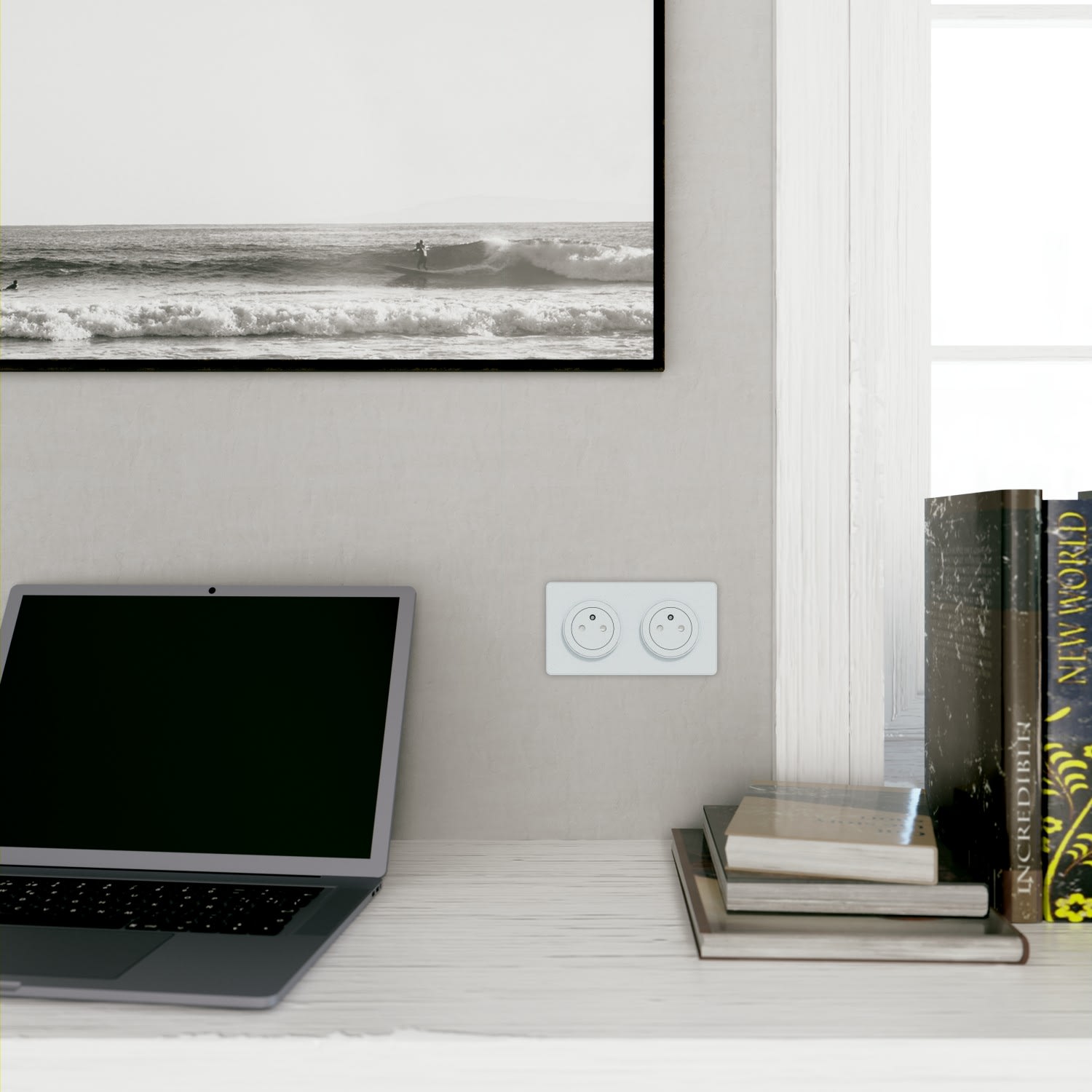 - Cette prise Odace se distingue par son design affleurant sur le mur ; elle est ainsi très discrète dans votre intérieur