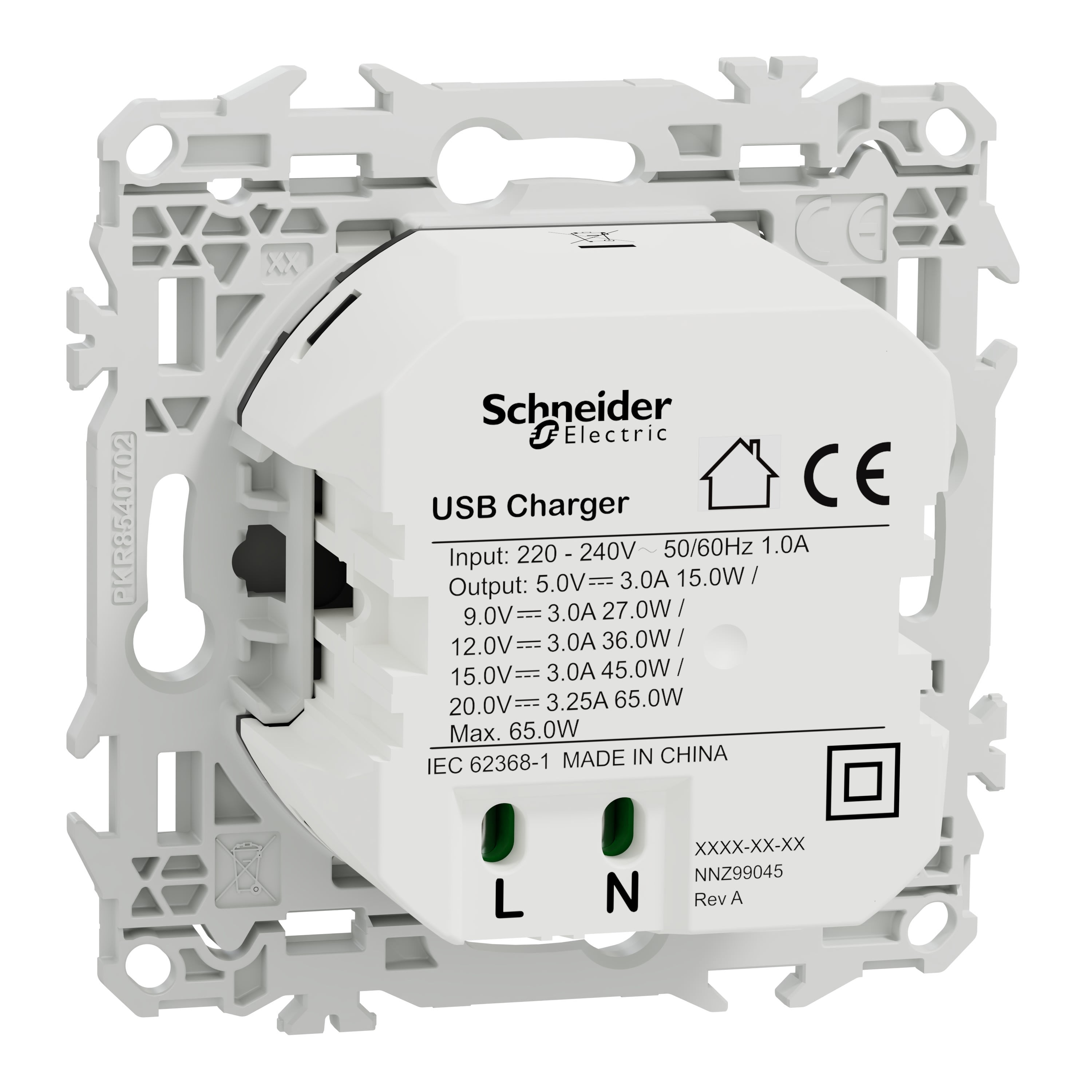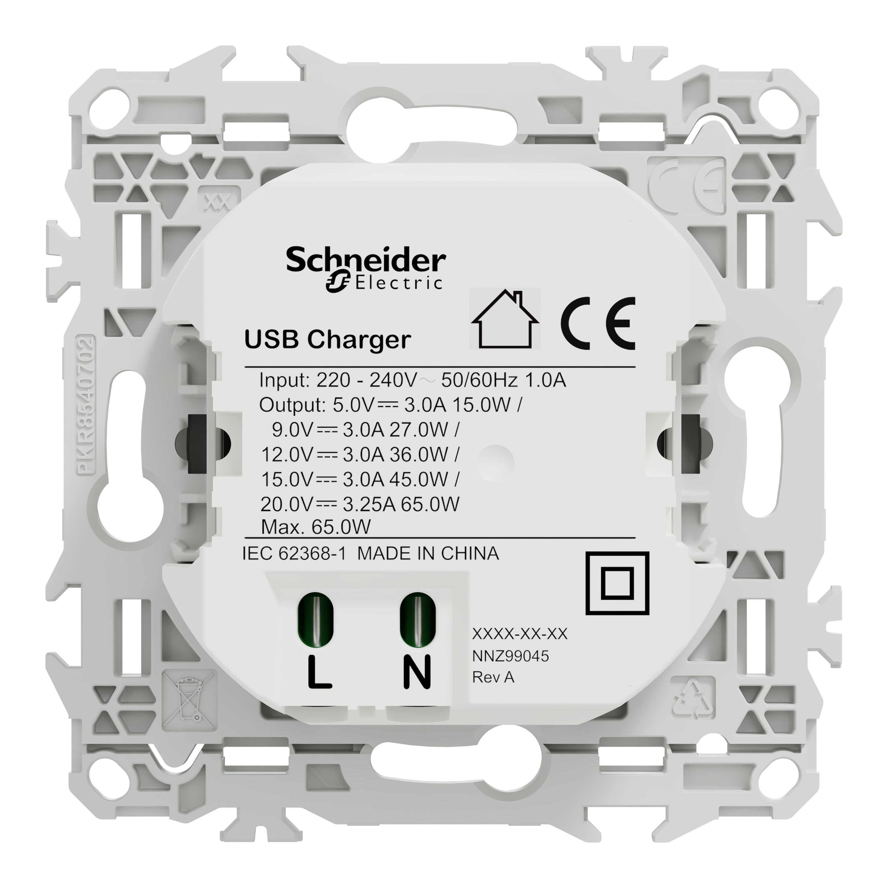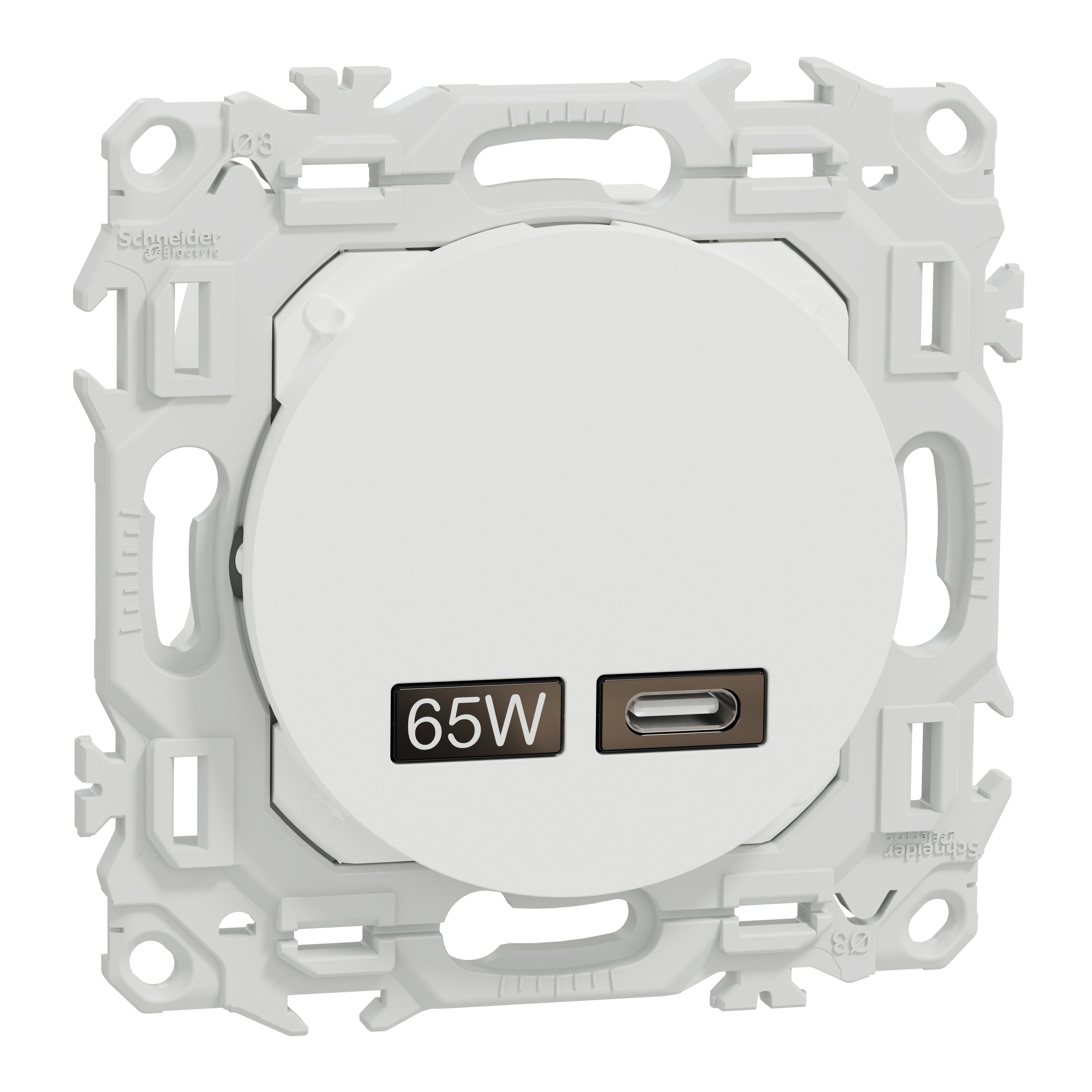 Schneider Electric - Odace - chargeur USB-C 65W - forte puissance et charge rapide - blanc craie - S920406