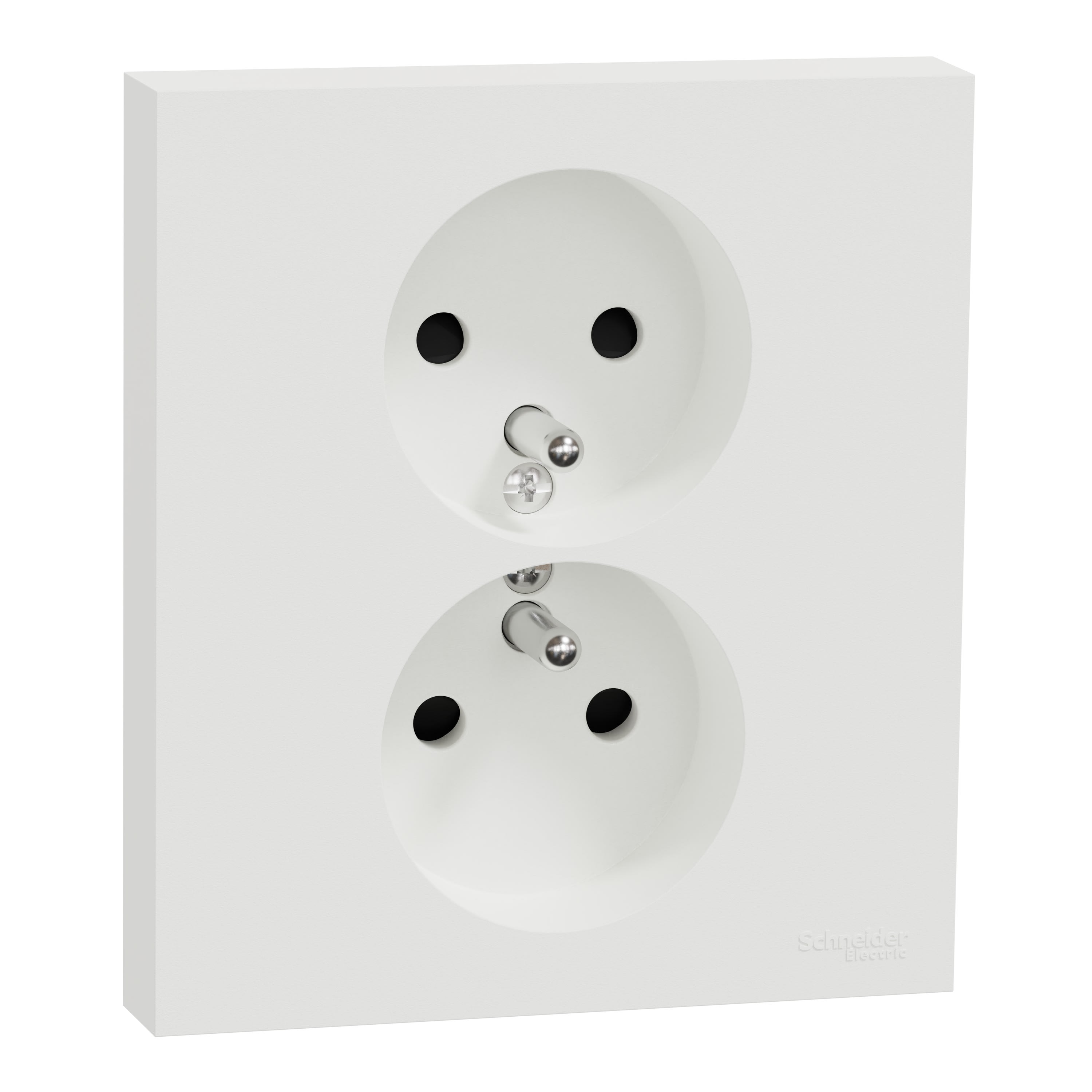 Schneider Electric - Odace - double prise de courant 2P+T avec plaque - install 1 poste - blanc craie - S921089