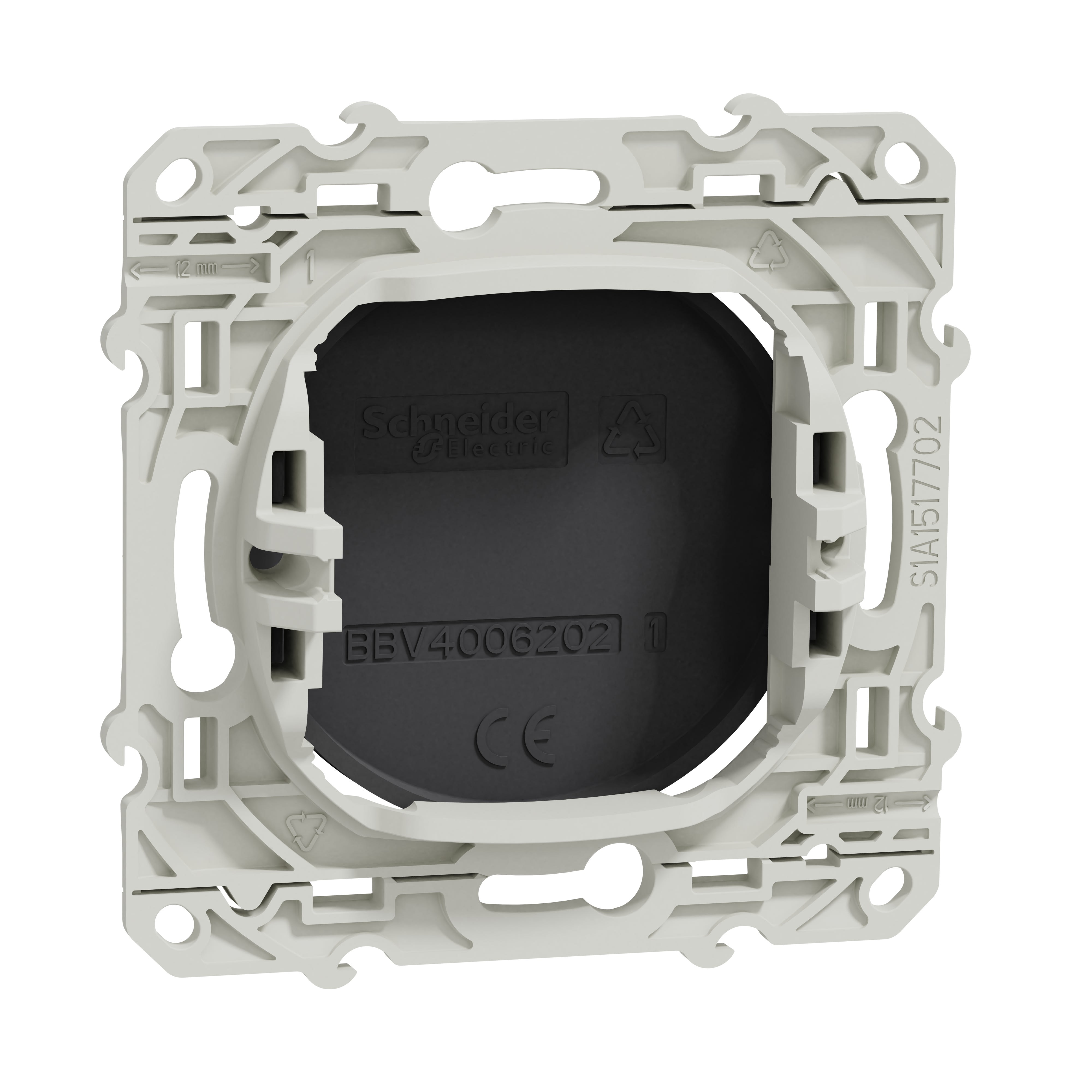L'obturateur Odace S540666 de Schneider Electric est un mécanisme équipé d’un cadre de fixation en plastique de couleur anthracite. Son boîtier de montage adapté peut être encastré dans la surface du mur. Cet appareil a un degré de protection IP21D. Son mode de fixation se fait par vis. Afin de prendre soin de l'environnement et de votre santé, il ne contient ni mercure ni métaux lourds. Cet appareil est également exempt de SVHC (substances extrêmement préoccupantes). Fabriqué en PBT (polybutylène téréphtalate) GF30, matériau thermoplastique ABS stabilisé aux UV, cet obturateur est très fiable et résistant.