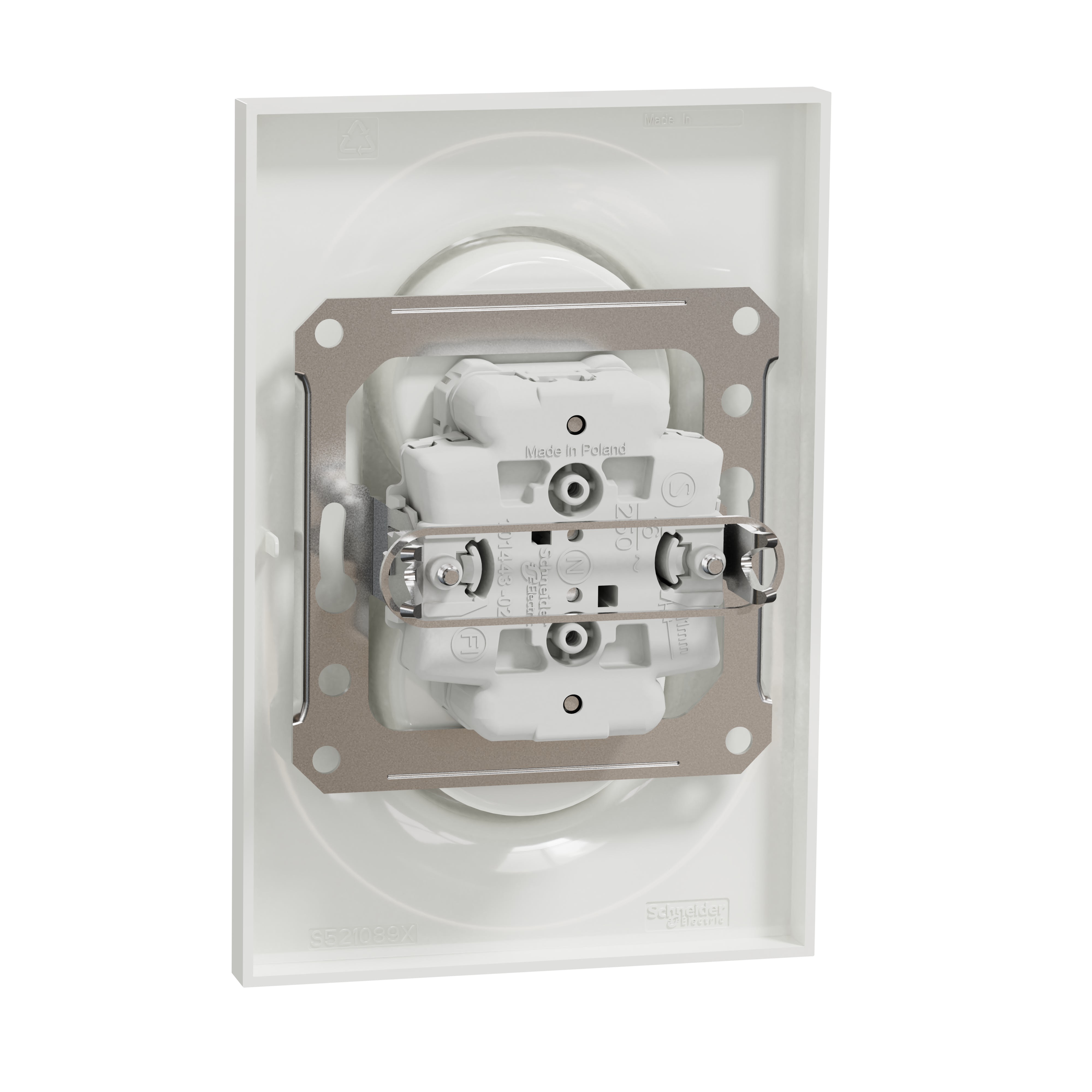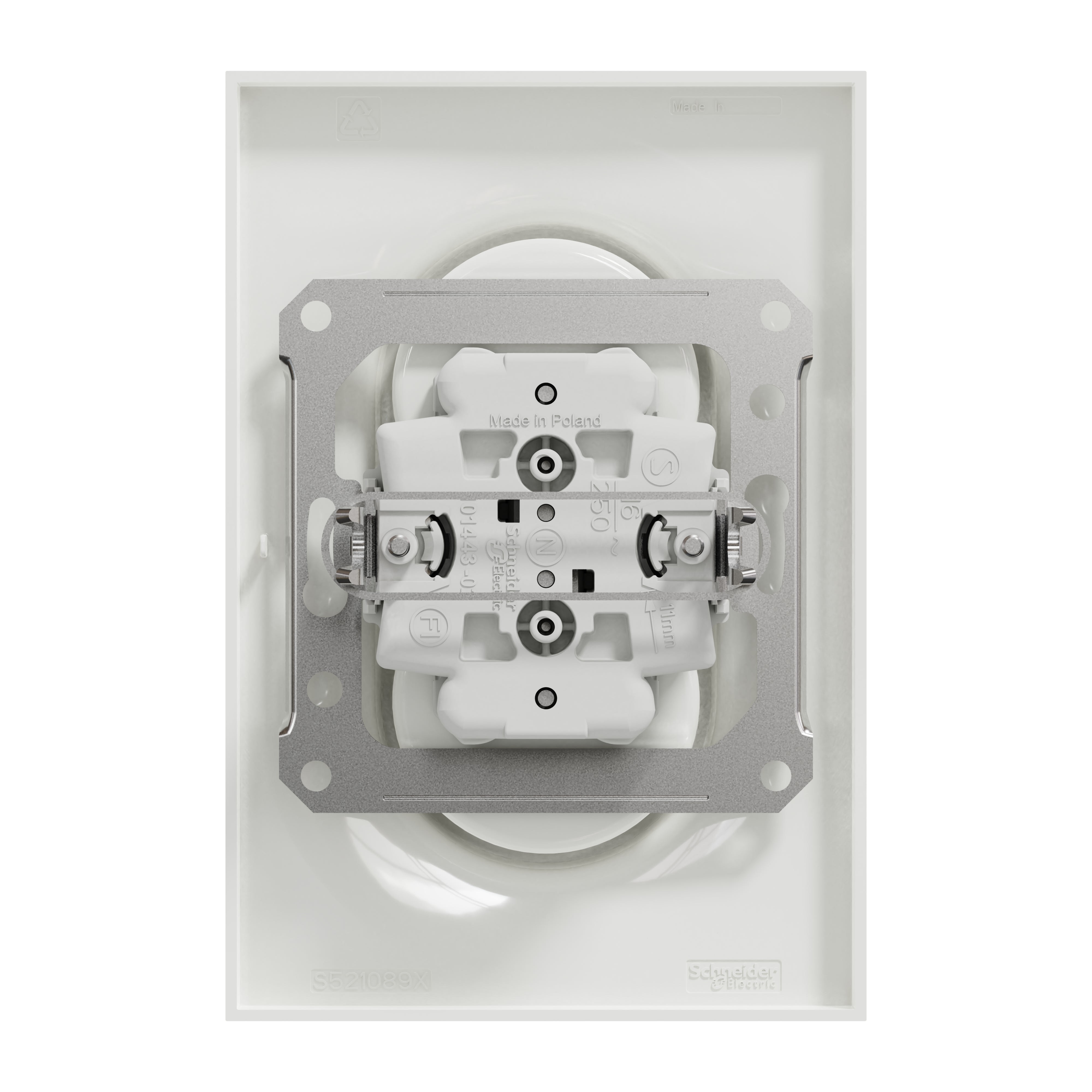 La prise de courant Schneider Electric Odace S521089 est une prise de courant complète de couleur blanche avec 2 prises de courant La configuration du pôle de sortie de cette prise de courant est 2P + T avec volets, protégeant les enfants d'éventuels chocs électriques Avec broche de terre Cet appareil est au standard français Le courant nominal est de 16A Le mode de fixation de cet appareil se fait par vis Il mesure 85 mm de largeur, 126 mm de hauteur, 46 mm de profondeur, avec une profondeur d'encastrement de 27,1 mm Sa boîte de montage assortie peut être encastrée dans la surface du mur avec le type affleurant La finition de surface est lustréee, ce qui garantit une finition brillante et même accueillante Il a un indice de protection IP21D Les borniers de connexion de cette prise de courant utilisent des bornes à vis La prise de courant est en ASA + PC, PC (polycarbonate) GF10 FR, et tôle, ce qui la rend aussi résistante que possible Il a également obtenu le certificat LCIE De plus, cet appareil Green Premium est qualifié de produit écologique, avec une utilisation minimale de substances dangereuses Et c'est sans mercure La gamme de raccords électriques Odace vous permet d'équiper votre maison de solutions pratiques et ergonomiques pour le summum du confort, de la sécurité et de la connectivité Odace allie technologie et design élégant, pour des appareils de câblage non seulement élégants, mais aussi fonctionnels et utiles