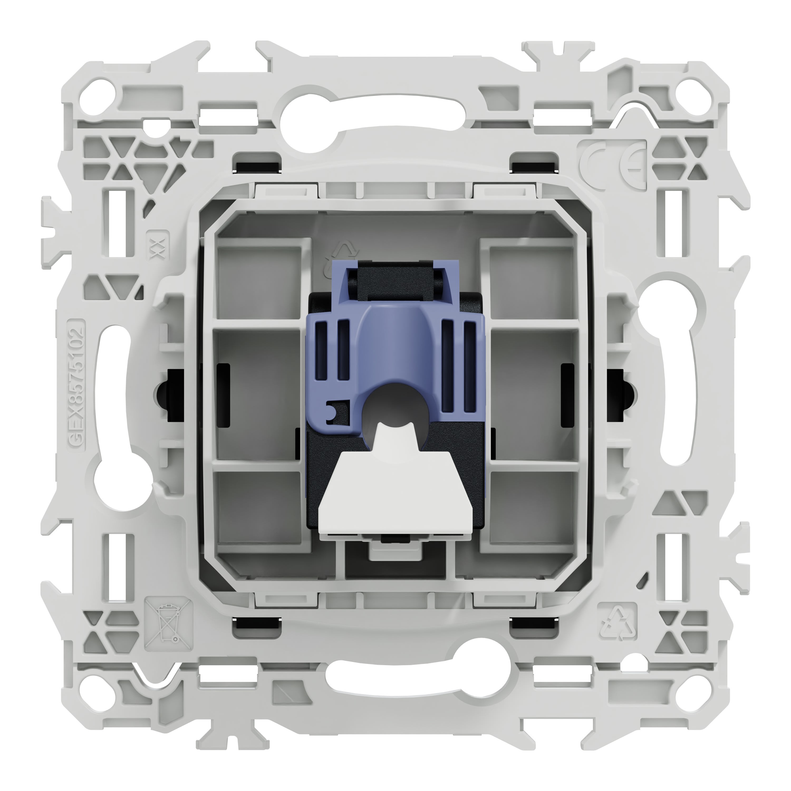 La fixation du mécanisme est facile et robuste sur tout type de boîte d'encastrement grâce à son support rigide à vis ou à griffes clipsables en option idéales pour la rénovation. Le connecteur S-One en 1 seule pièce permet un montage et démontage facile du câble RJ45.